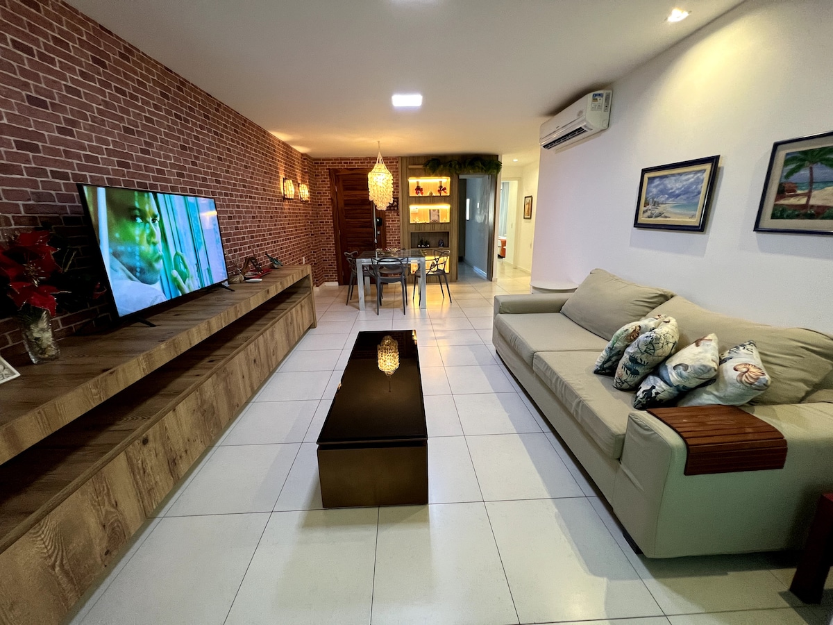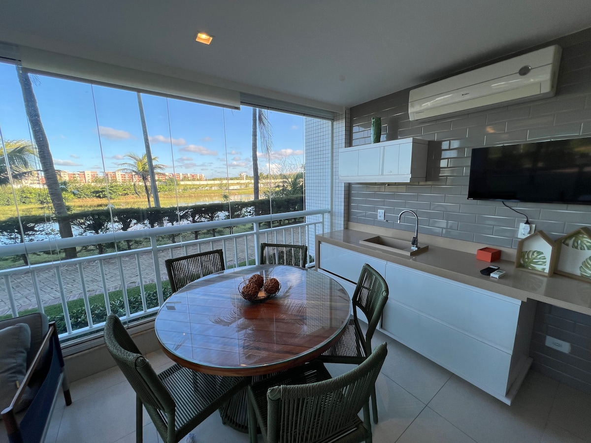 Luxurious 3-Bedroom Apartment in a Prestigious Brazilian Golf Resort – Perfect for Remote Work & Staycations Welcome to your dream getaway at our stunning 3-bedroom, 3.5-bathroom apartment, nestled within a luxurious resort in Porto das Dunas, Aquiraz, CE. This exquisite apartment, which graced the cover of a top interior design magazine in 2021, seamlessly combines modern, sleek design with the comfort and amenities of a 5-star hotel, offering an unforgettable experience for up to 8 guests.