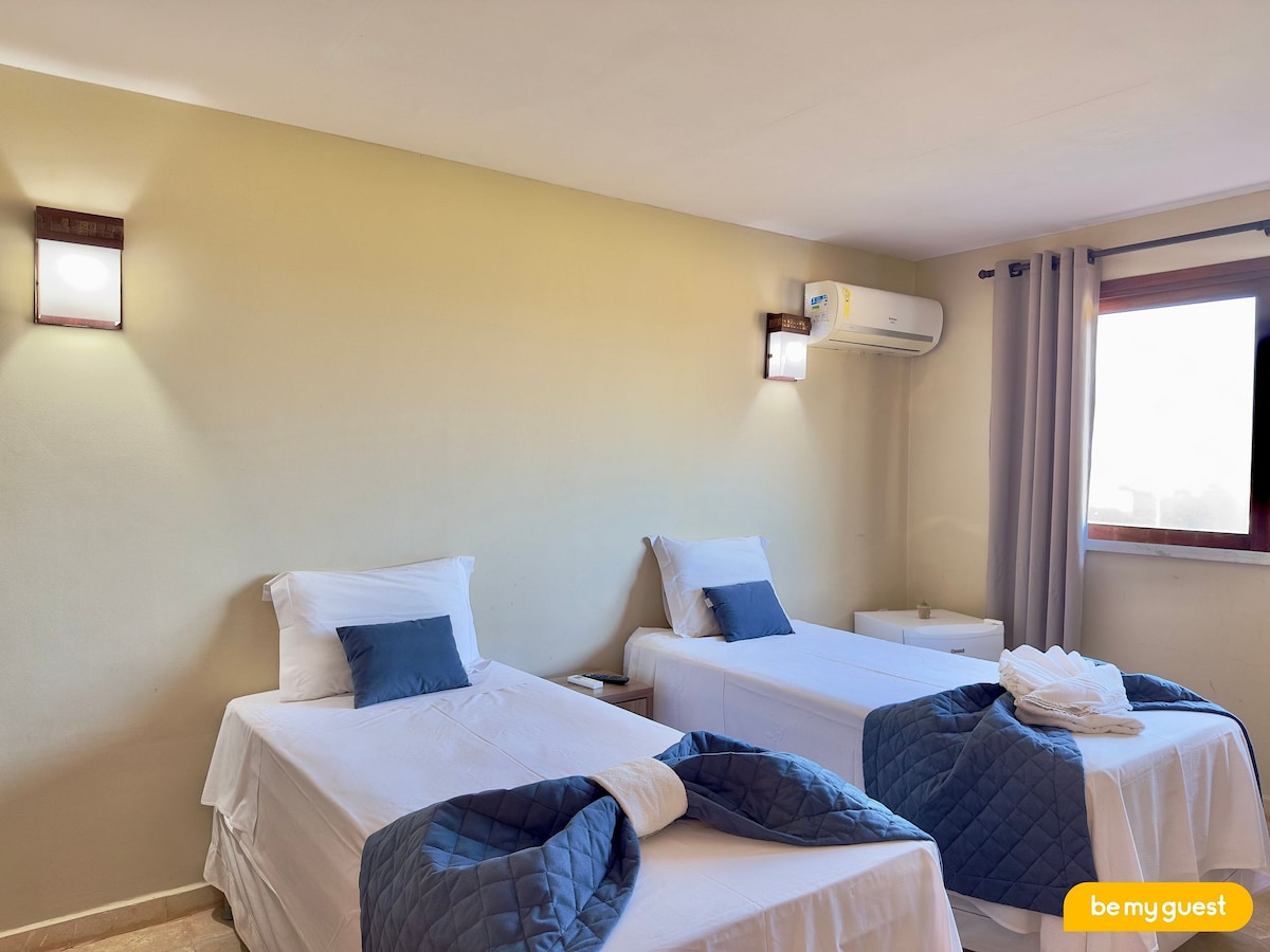 Multitemporada presents the Double Suite – Ground Floor at the On the Beach Inn, a comfortable and functional accommodation ideal for couples. The unit includes air conditioning, Smart TV, private bathroom, and complete bed and bath linens. The inn offers parking with one space per suite, a shared kitchen, and two pools, ensuring convenience and relaxation during your stay.