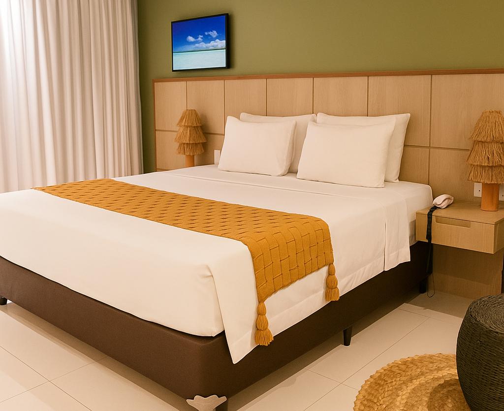 Nenhum detalhe passa despercebido nesta acomodação charmosa e sofisticada. Conforto e momentos relaxantes com sua família é o que define sua hospedagem num resort pé na areia.. Dispomos de apartamento Deluxe completo, área de convivência com maravilhosas piscinas, campos de golfe e muito mais. Além de estar localizado a alguns minutos do Beach park.