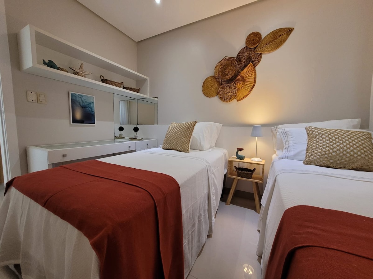 Modern and stylish apartment located in the desirable Palm Beach community, just one block away from the popular Beach Park (0.15 mile) and only a 20-minute drive from Fortaleza. With an electronic lock, Smart TVs featuring Disney Plus, and 3 comfortable air-conditioned bedrooms. Our apartment is not only conveniently located near Beach Park, but also within walking distance of a variety of essential and tourist services, including grocery stores, pharmacies, bars, restaurants, and bus stops.