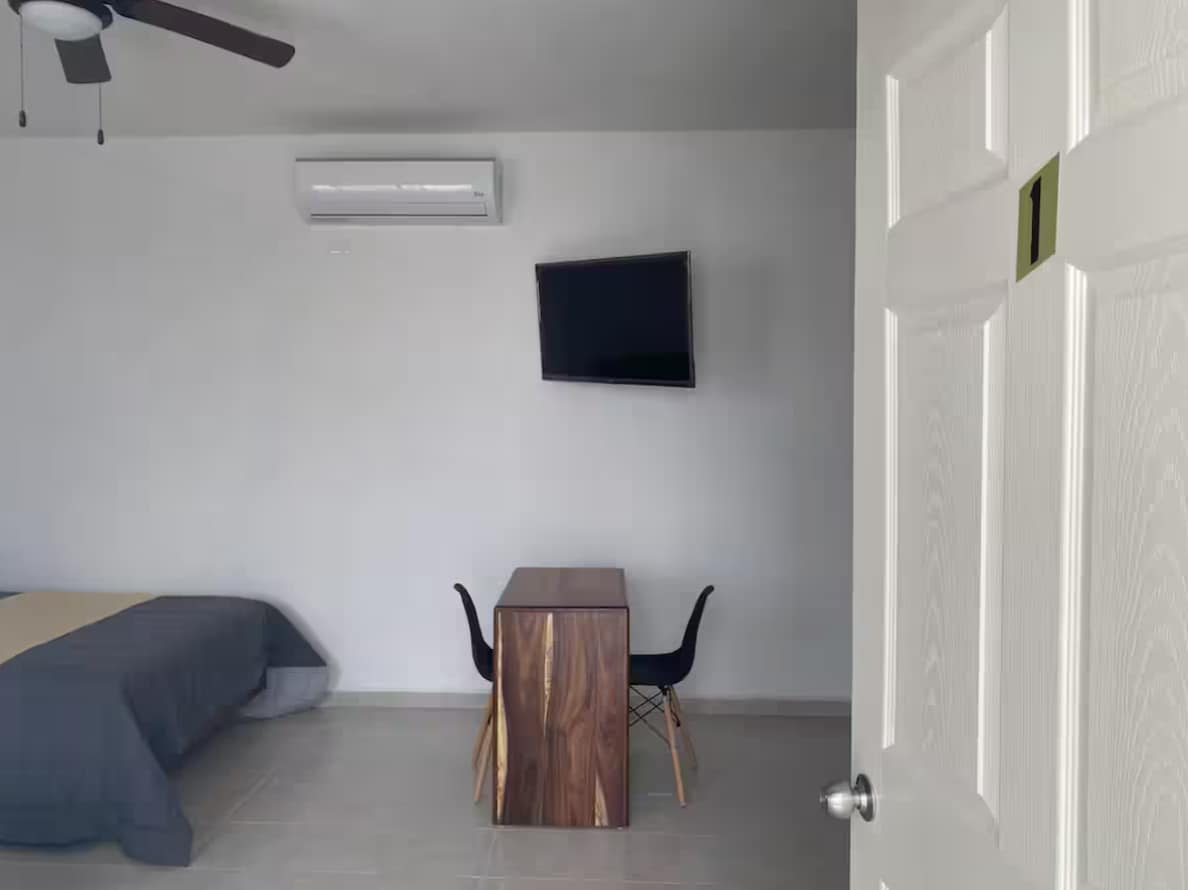 Disfruta de la sencillez de este LOFT tranquilo y céntrico. con 3 camas, Aire acondicionado, Wifi, entrada automatizada, Cocina con lo necesario para 4 personas, cubiertos, platos, sarten, etc, ubicado en una privada de solo 12 casas, A 5 minutos del centro de la ciudad, 3 cuadras de supermercados, restaurants y 3 oxxos cercanos cercanos, 1 minuto de la avenida principal para ir a los diferentes parajes turisticos
