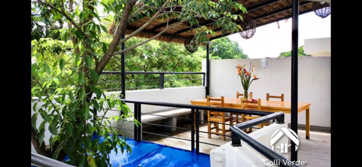 Disfruta de este moderno apartamento muy lindo y acogedor equipado con todo lo que necesitas para pasar un gran estancia ya sea de viaje o de negocios cuenta con una linda palapa y alberca (Compartidos)para relajate y pasarla super a unos pasos un oxxo 24 horas y a 3 min centro comercial (soriana) fácil acceso te esperamos.