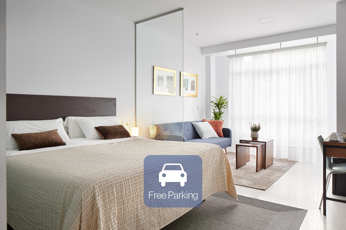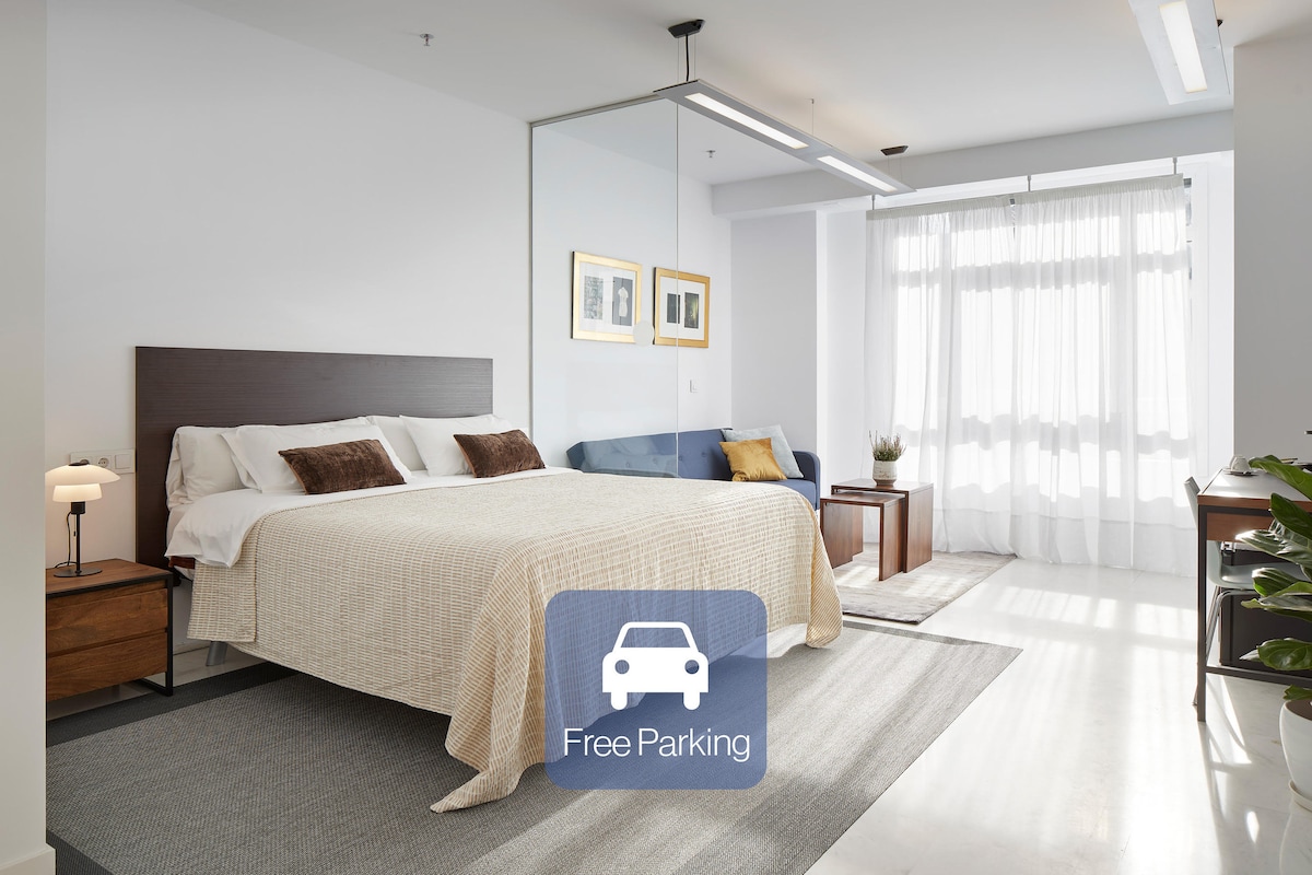 Bienvenido a la Suite Deluxe de Satori Suites: un espacio diferente, cuidado y acogedor para que te sientas como en casa. Una habitación de casi 40 metros dividida en salón, dormitorio y baño privado. Un espacio luminoso y nuevo. Una habitación muy especial para hacer tu estancia muy especial también.