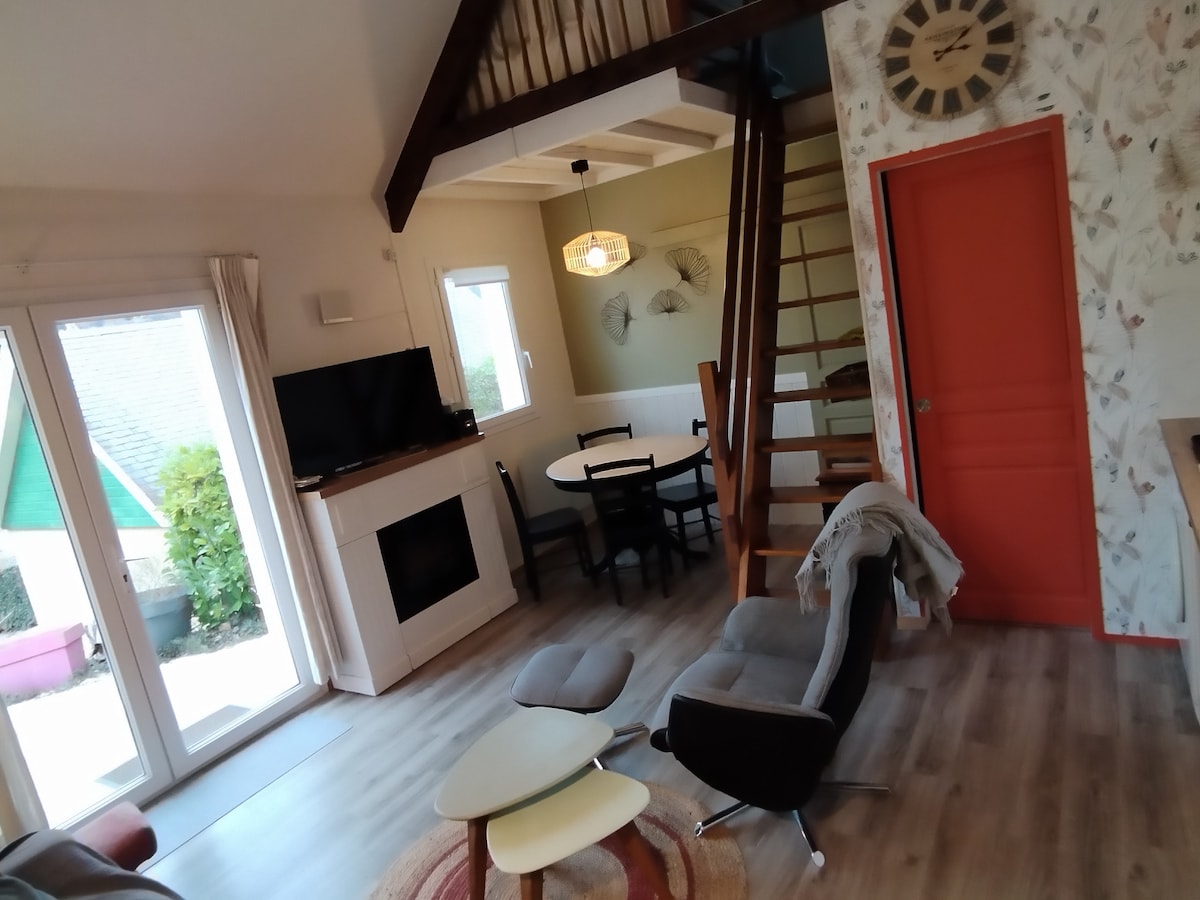 "Le Pied à Terre" 2 stars, offers peace and comfort. Entire cottage 35 m2. 160/200 bed with memory foam, cotton sheets and towels provided. Equipped kitchen, coffee, tea, herbal tea, fruit juice offered. Bathroom with shower and shower gel. Equipped terrace, deckchairs, garden, bike shelters. Good WIFI connection by CPL. Free indoor and outdoor parking. Not overlooked. Cycle path 100 meters away. Grocery store 3 minutes walk.