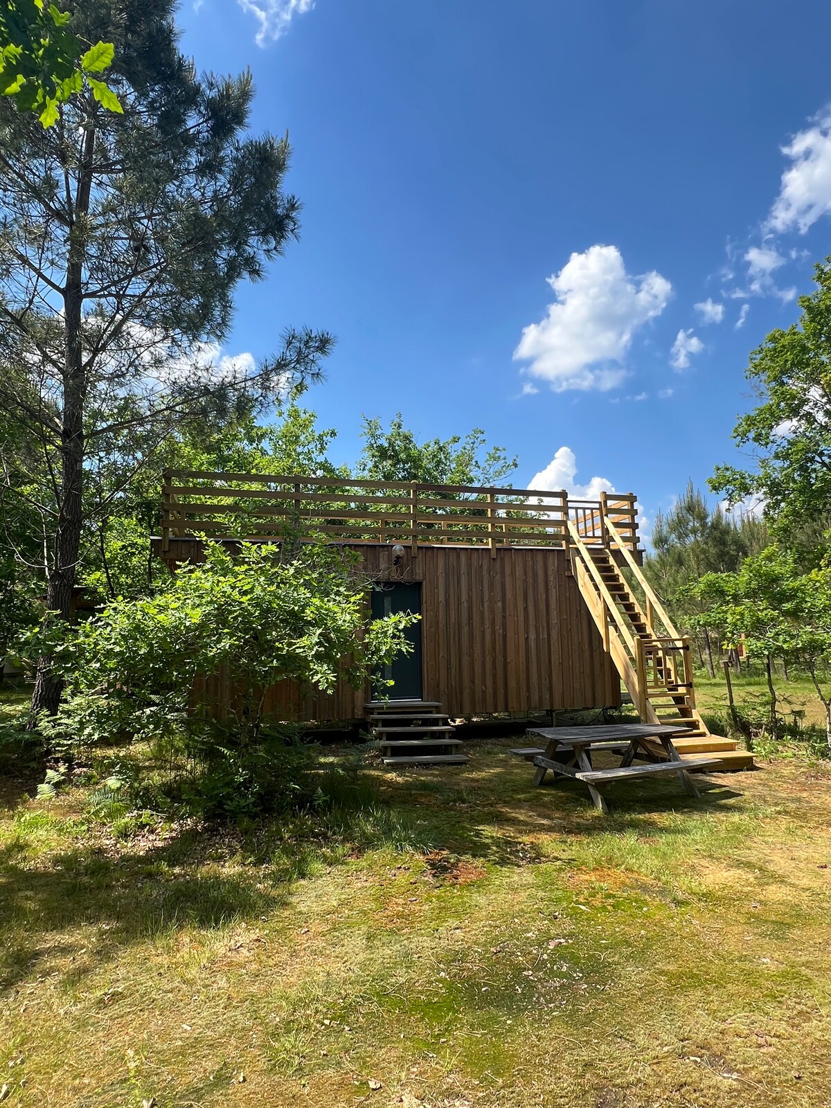 Face à la forêt et sans aucun vis-à-vis, cette tiny house est une parenthèse de calme et de nature. Réveillez-vous au son des oiseaux, savourez votre café devant la brume matinale, puis détendez-vous dans le jacuzzi chauffé à 37–39 °C, été comme hiver. En option, profitez de délicieux paniers repas ou petits-déjeuners livrés à votre porte. Déconnexion totale garantie, entre nature et confort absolu, pour un séjour unique où le temps semble s’arrêter.