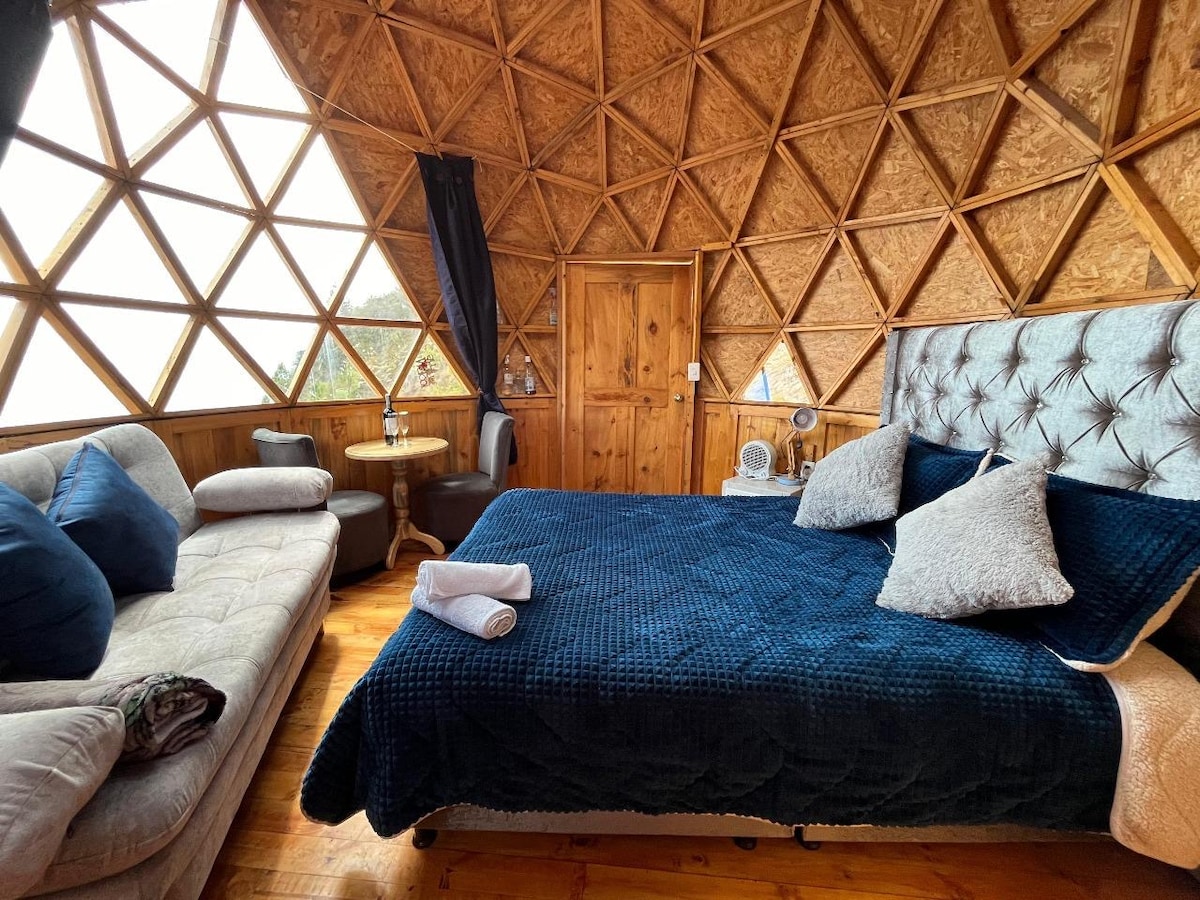 Glamping con jacuzzi, fogata, lago con gansos dentro de la propiedad🪿 plan pareja romántico o con niños en medio de la naturaleza con baño privado dentro de la unidad, cocina equipada y vista privilegiada al lago, conexión Wi-Fi, el lugar perfecto para vivir el amor!