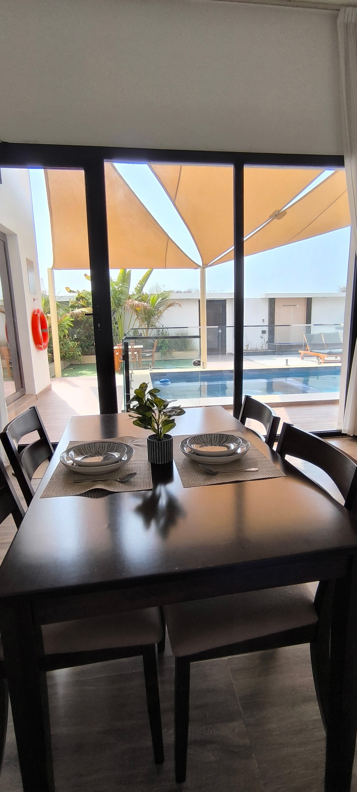 Relax in this calm and elegant accommodation. Perfect for couples and for having a great time. There’s a large pool with a small pool for relaxing, along with a designated grilling area. Wi-Fi is available, and there's a smart TV. The kitchen is equipped with a microwave, stove, fridge, and dining utensils. Enjoy your stay!