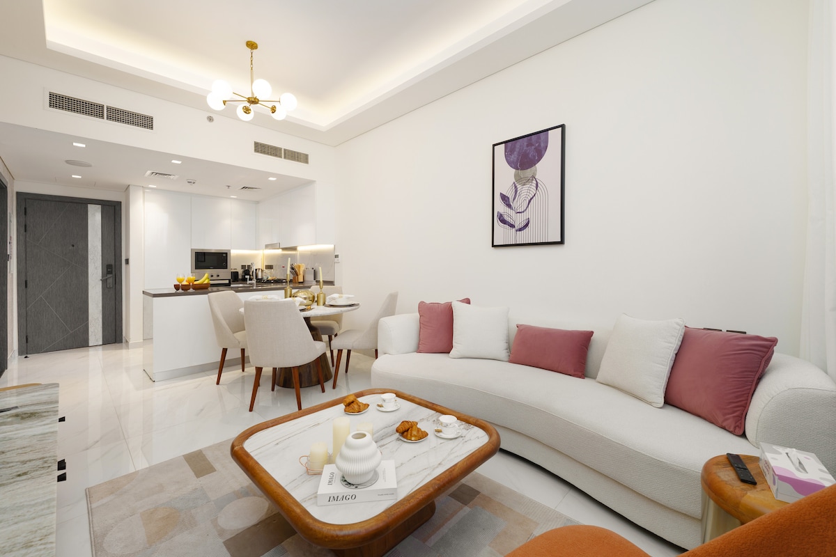 Welcome to your bright and modern 1-bedroom apartment in the heart of Jumeirah Village Circle – perfect for couples, solo travelers, business guests, and even small families. Thoughtfully furnished and filled with natural light, this home offers everything you need for a comfortable and relaxing stay. Whether you're visiting for a few days or planning a longer stay, you’ll feel right at home. Kick back and relax in this calm, stylish space.