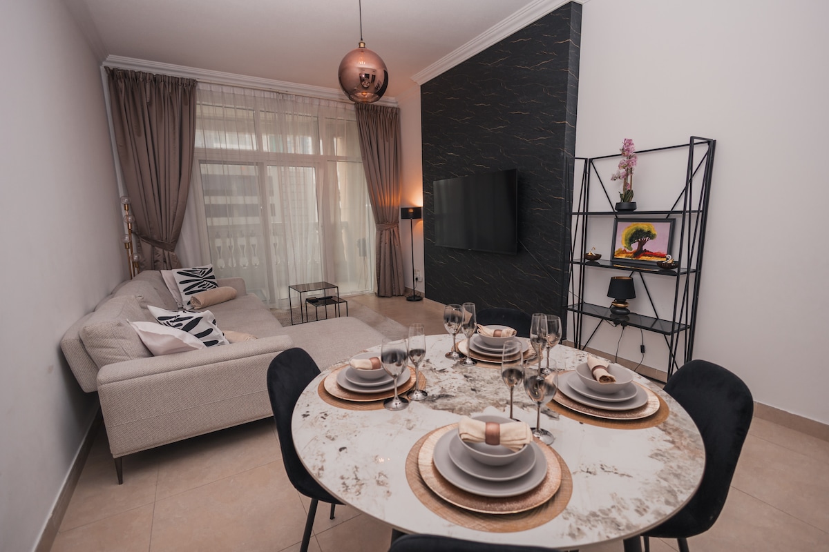 Welcome to your bright and modern 1-bedroom apartment in the heart of Jumeirah Village Circle – perfect for couples, solo travelers, business guests, and even small families. Thoughtfully furnished and filled with natural light, this home offers everything you need for a comfortable and relaxing stay. Whether you're visiting for a few days or planning a longer stay, you’ll feel right at home. Kick back and relax in this calm, stylish space.