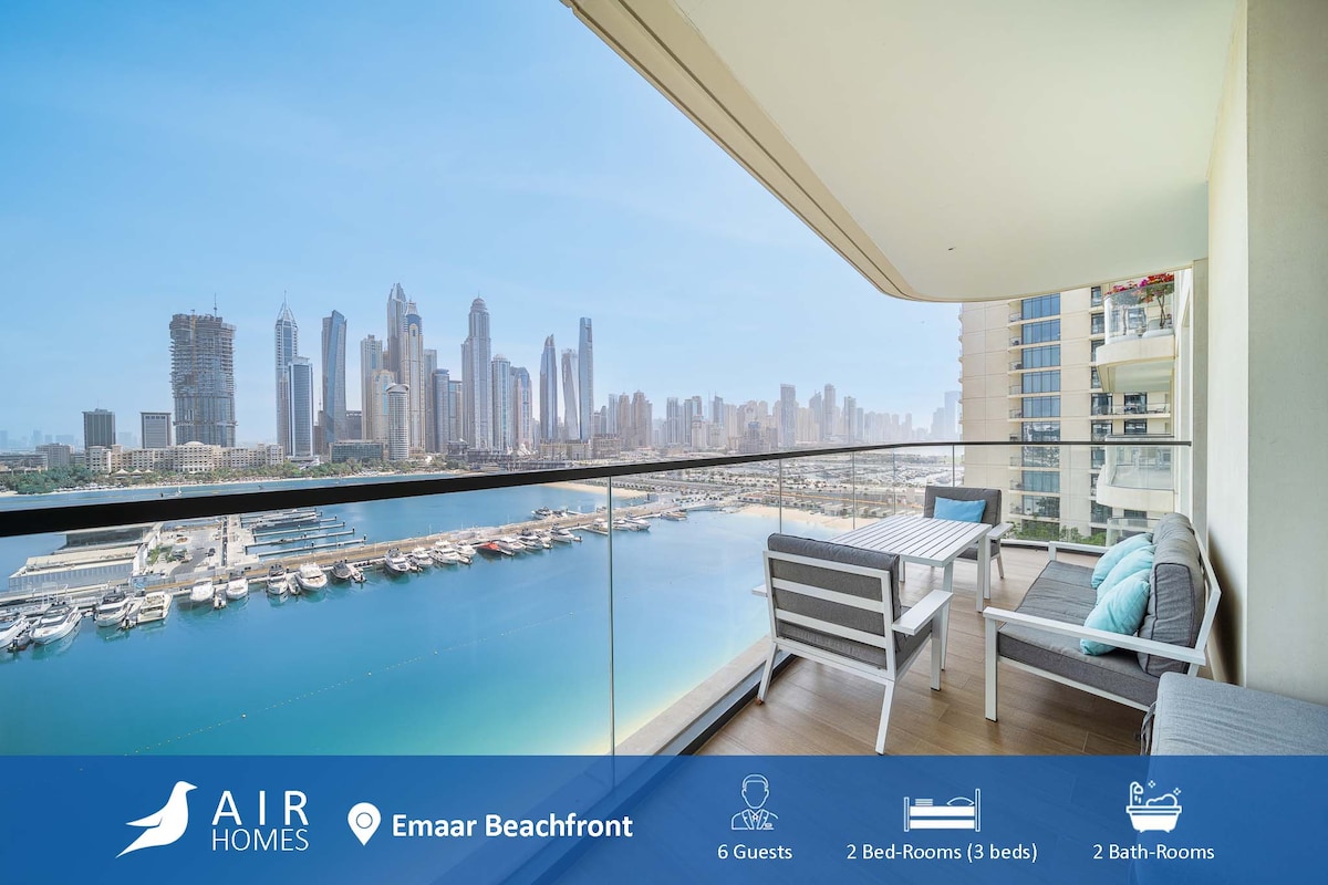 Welcome to your dream escape at Emaar Beachfront! This spacious, beautifully furnished 1-bedroom apartment offers the perfect blend of comfort, style, and unbeatable location. Relax with stunning views of Dubai Marina, soak up the sun on your private beach, or lounge by the infinity pool. Ideal for couples, families, or friends—this apartment comfortably sleeps up to 5 guests, featuring a sofa bed and chair bed with full bedding. Pool closed Dec 3 to 28
