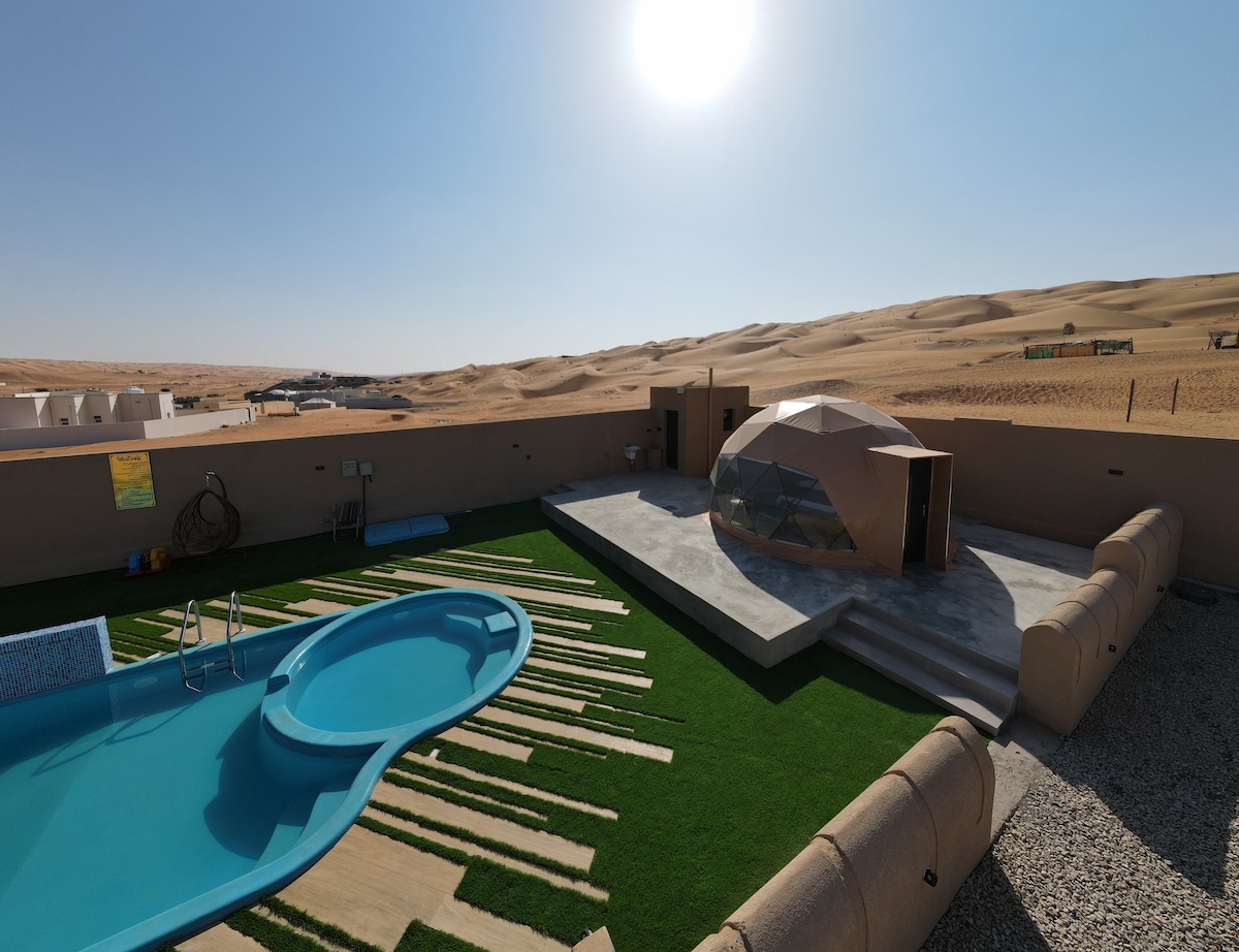 The first glass dome in Oman. Get to experience staying in the Arabian desert (Bidiyah) and sleep under the stars, the vacation home offers a unique experience, it is open to nature & views yet still offers privacy, the chalet has a nearby (+20m high) sand dunes where you can hike and enjoy the view, relax or take the sand slide provided and have fun, speaking of fun 4 types of board games are also available. At night you have the chance of grilling a BBQ since there is a grill in the backyard.