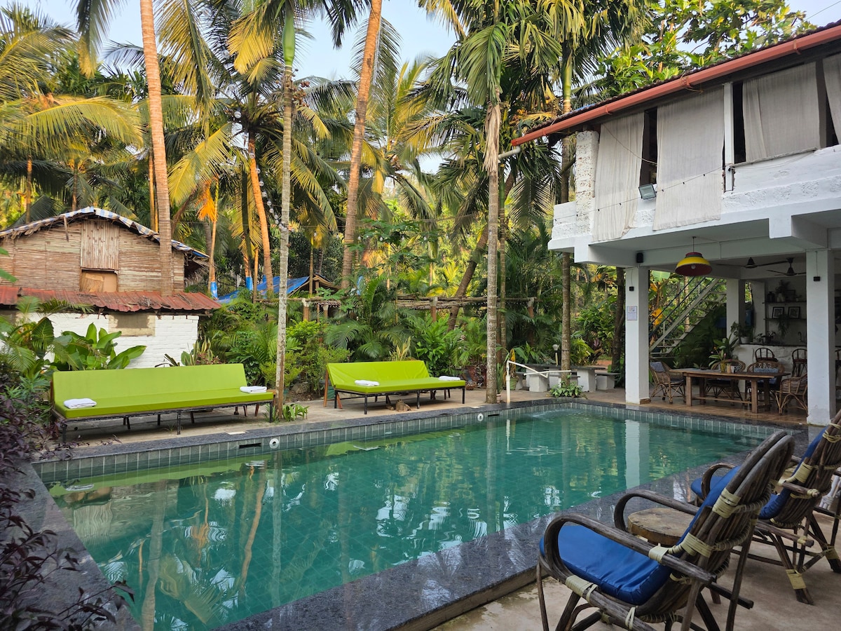 Discover tranquility at Palmorama—a serene 1BHK retreat in a farmhouse surrounded by lush palm trees and paddy fields, just 5 minutes from Mandrem Beach.