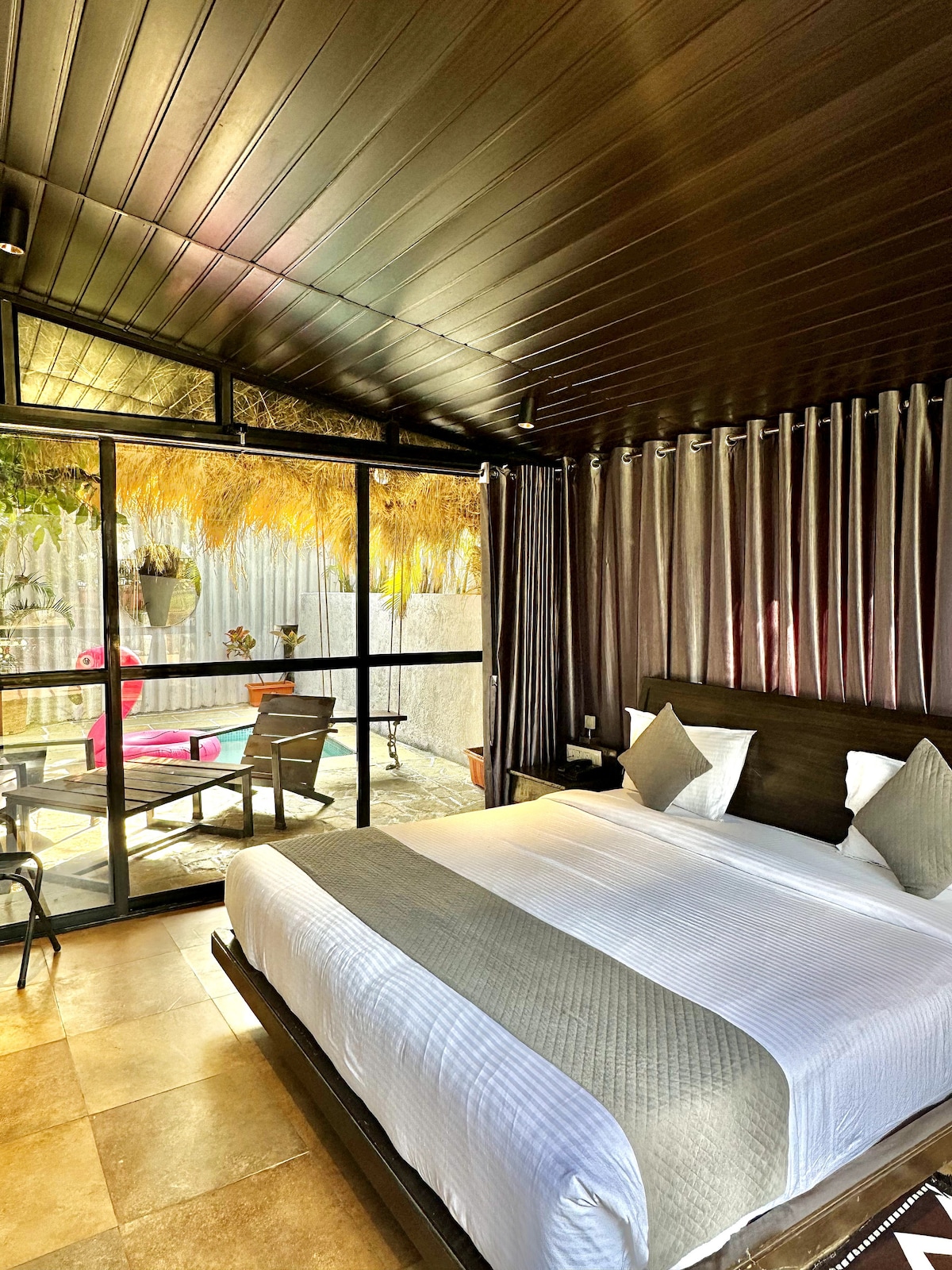 🌴 Luxury Wooden Chalet w/ Pool, Café & Bathtub 2 mins from Candolim Beach Far from the noise & close to the waves, our elegant wooden chalet offers rustic charm with modern comforts, spa-style bathtub, plush bedding, and calm beach vibes. Enjoy a shared pool, on-site Café, and cozy interiors perfect for couples, solo travelers, or remote work. 🛁 Bathtub | ☕ Café | 🏊 Pool | 💻 Wi-Fi
