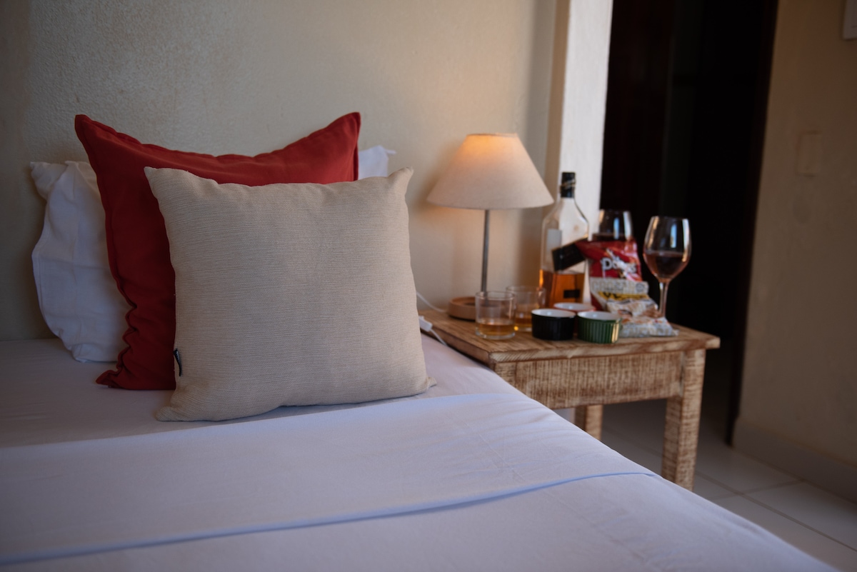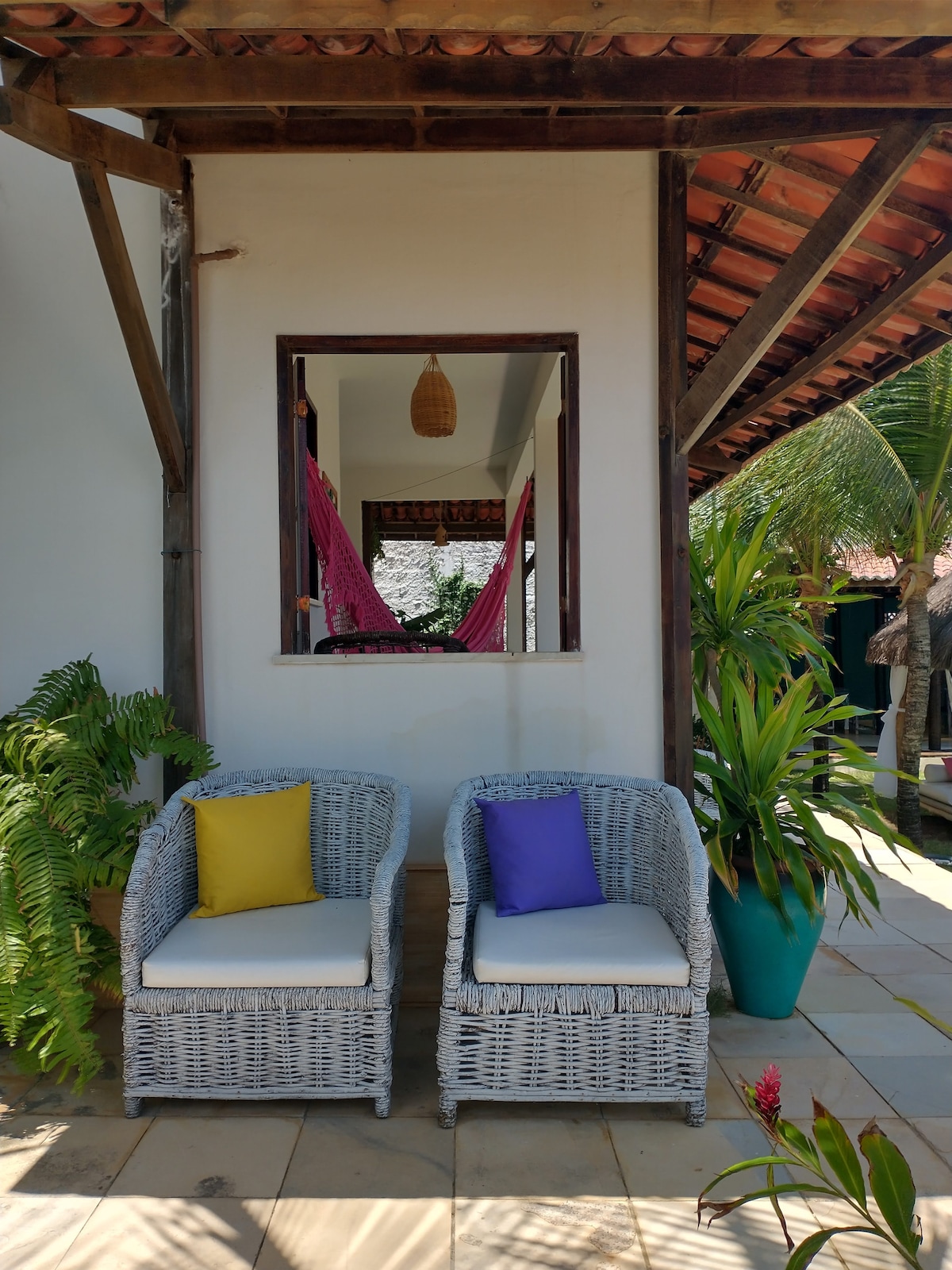 A suite oferece banheiro privado dentro do quarto, ar condicionado, água quente, e frigobar. Dispõe de uma varanda individual e um pátio de uso comum na sombra de um frondoso cajueiro. A varanda oferece espaço privado para duas redes.