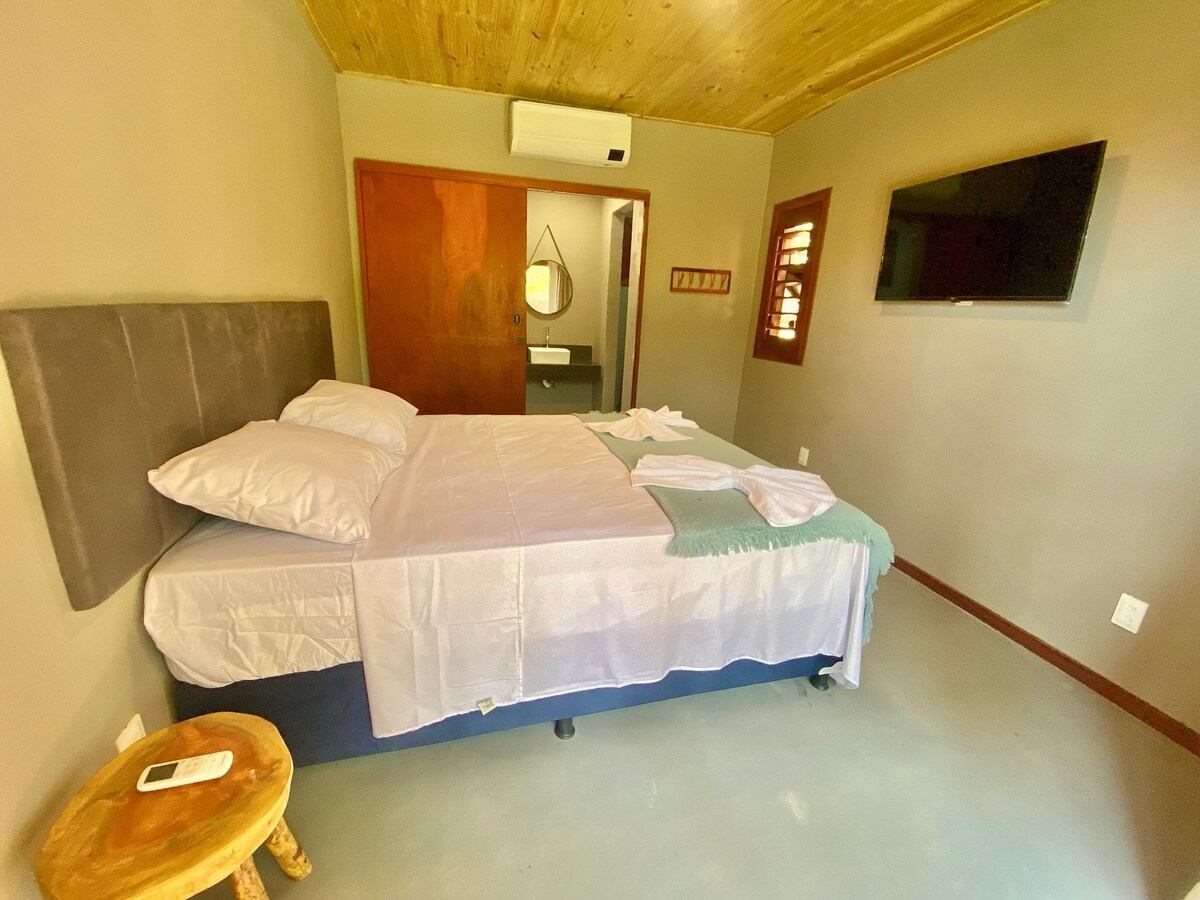 Apartamento no piso superior no lado do jardim. O apartamento tambem tem wifi, frigobar, tv a cabo, ar-condicionador split e chuveiro quente. A pousada esta dividido em 2 lados por uma rua e este apartamento fica no lado do jardim, cafe, e estacionamento. Se quer ficar no lado da recepçao e piscina escolhe um apartamento comfort.