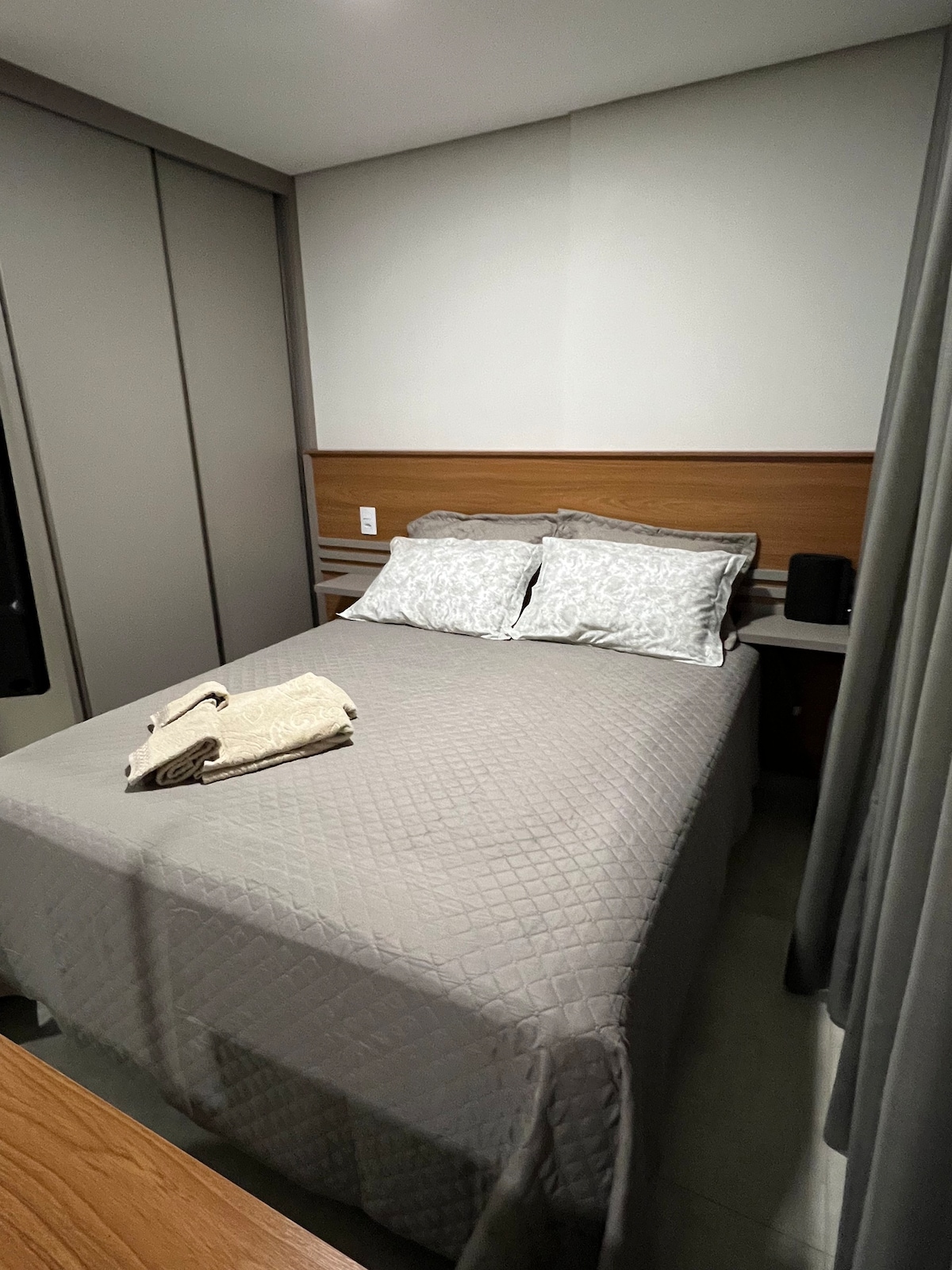 Studio aconchegante com vista para a cidade | Garagem grátis e localização estratégica Mais do que um lugar para dormir, esse espaço foi pensado para acolher. Ideal para quem busca conforto depois de um dia cheio — seja de trabalho, estudos ou viagem. Localizado na entrada da cidade, próximo a cafés, restaurantes e tudo que você precisa. Um cantinho moderno, funcional e com alma de lar. 🛏️ Acomoda até 3 pessoas confortavelmente (ou 2 adultos + 2 crianças com ajuste).