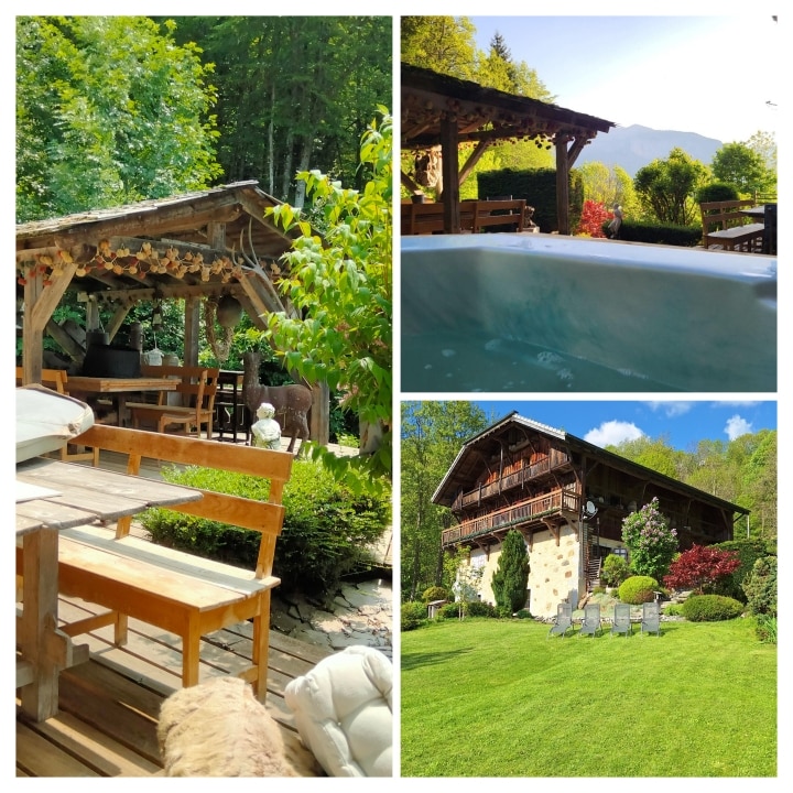 Add logs to a fireplace with a massive stone hearth and recline on a rustic wooden sofa. Gaze through picture windows at the alpine forest surrounding an authentic chalet. Return from the slopes and unwind in a luxury sauna in a cabin-chic bathroom. Une chambre de 25m2 avec lit double, rangements, armoire authentique. Un salon chaleureux et spacieux avec double baies vitrées donnant sur le Mt Blanc et cheminée. Et un sofa banquette convertible en 2 lits individuels. Cuisine pratique et toute équipée. Une salle de bain en granit avec douche et sauna 3 personnes. Une terrasse devant forêt et ruisseau ( avec fréquente visite des biches - voir photos ), avec fontaine et vue imprenable sur le massif du Mt Blanc. The chalet is an individual construction fully available and reserved for the guests. So are the terrace and the surroundings ( a small river, a private bridge and access to the forest ). A disposition pour toute question. Dans le hameau de Coupeau : Chalet authentique dans la forêt au-dessus des Houches avec vue exceptionnelle sur le massif du Mont Blanc. En Bord de petit torrent avec des biches A 5 min en voiture des Houches, à 10 min de Chamonix, à 1h de Genève. Easy access by road to the chalet. 2 kms from Les Houches and 10 kms from Chamonix. Parking just behind the chalet A fully renovated old chalet. With all modern comfort ( inc Sauna for 3 ) and top decoration. A unique view on the MontBlanc chain. The chalet is in the hamlet of Coupeau, in the forest above Les Houches, with exceptional views of Mont Blanc. It's a 5-minute drive to Les Houches, 10 minutes to Chamonix, and an hour to Geneva.