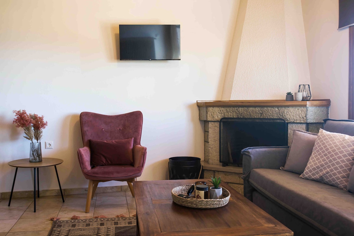 Enjoy your stay in this cosy one-bedroom apartment with a luxurious double bed and a comfy living-room with fireplace and kitchen. Ideally located in a quiet neighbourhood at the centre of Arachova, only 100m away from the shops and restaurants. Fully equipped to make your stay worth and comfortable. The stone front-yard is ideal to have your morning coffee under the cedar tree, before you set off to experience Arachova and Mt Parnassos.