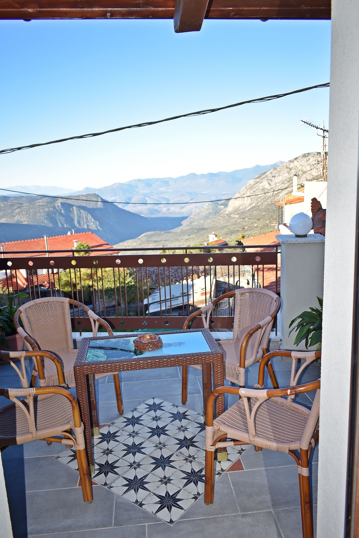 A hilltop penthouse condo offering unique panoramic views of the Corinthian Gulf and the Olive Tree valley of the Delphi Oracle! The balcony offers some of the best views in Delphi, one of the most important & inspirational valleys in Ancient Greece! Spacious and comfortable, offering 2 double bedrooms, living room, fireplace, fully equipped kitchen with dining facilities and large bathroom! The condo will be your ideal base to explore Delphi and the picturesque towns Arachova, Galaxidi, Itea!