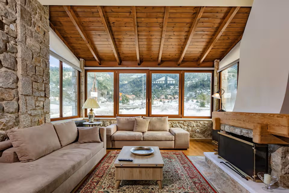 Welcome to Rock Dandy, a house with a bold personality. This three-story stone villa, nestled in a charming small complex, offers breathtaking views of the Oracle of Delphi, the surrounding mountains, the valley, and the town of Itea. At an altitude of over 900 meters, it feels like you are enjoying the sun and clouds from a first-class seat in nature. The interior is sophisticated yet inviting, blending discreet luxury with warmth and comfort.
