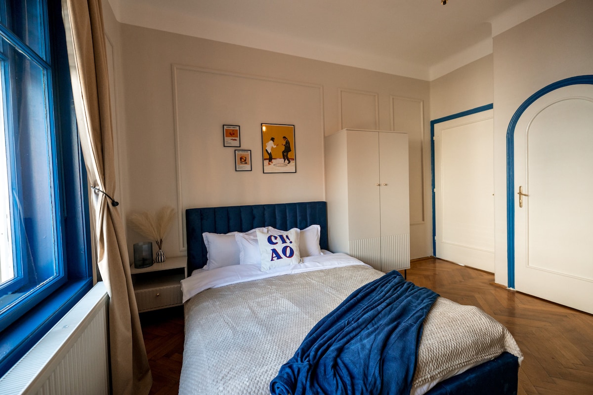 This elegant and cosy property is located in the historical downtown. The entrance is reached through a lush green yard, so you can enjoy an oasis of tranquillity right in the city centre. The apartment has been recently renovated. It has a unique vibe, a stylish design, and spacious rooms. There is an inviting living room, an intimate bedroom, a huge kitchen, a bathroom, and a hallway. This is the perfect choice for travelers who want to stay in the heart of the city while enjoying privacy.