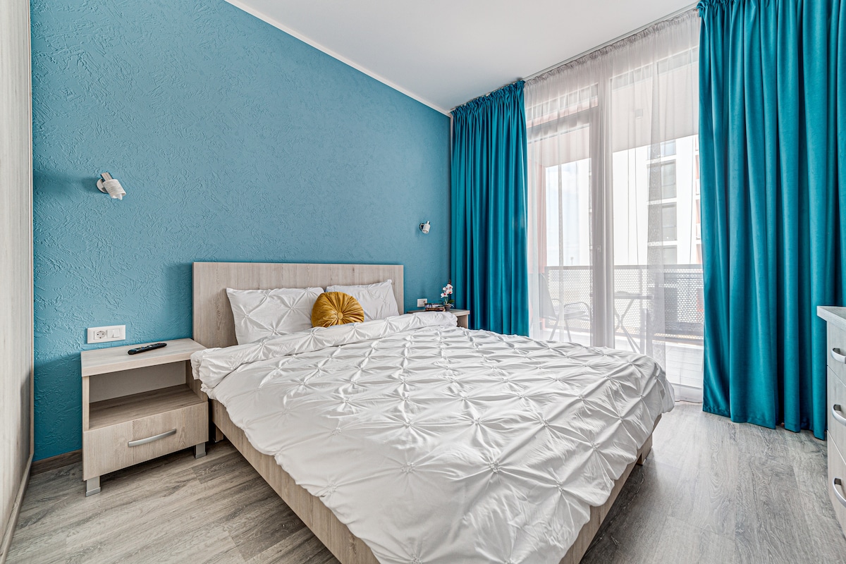 The apartment is located in ARED complex, in a great area, only 2 minutes from AFI Mall, Atrium Mall, McDonald, restaurants, terraces or parks. The apartment features a spacious living room with sofa bed, a fully equipped kitchen, a bedroom with king size bed, a big bathroom and a balcony with view. The place is designed with the idea of providing a comfortable space for couples, families, solo or business travelers who are looking for a memorable stay in Arad. Free private parking for guests