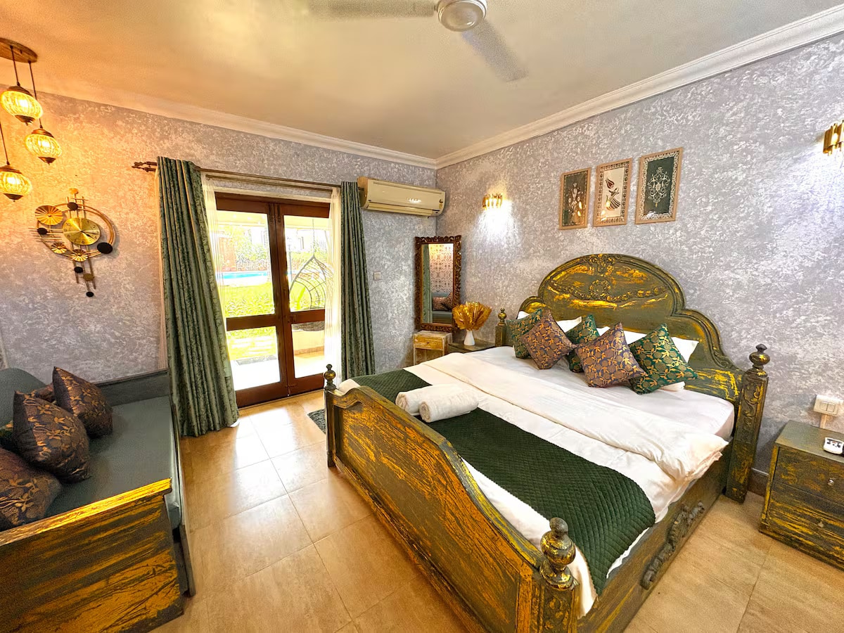 ☆ Private pool right in your balcony ☆ Located next to all major beaches in North Goa ☆ Calangute Beach 6 Mins 🛵 ☆ Candolim Beach 13 Mins ☆ Vagator Beach 25 Mins ☆ Anjuna Beach 25 Mins ⇒ Easily Access both Airports ⇒ Peaceful Neighbourhood ⇒ Perfect for WFH. Includes a Desk & Fiber WIFI ⇒ Ample parking space for both cars and bikes ⇒ Sleeps 4 Adults ⇒ High-end furnishing, French silverware, 1 king size bed and 1 queen size sofa bed ⇒ 55” Smart TV, PlayStation and Marshall Speakers