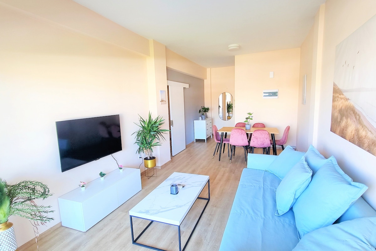 3 MIN WALK TO THE BEACH! One of our most popular flats, 150m from Finikoudes. Total bathroom renovation, as well as all windows replacement in June 24. Close to cafes and restaurants. Bus stop outside the building for Larnaca, the airport, or other towns. Great for couples, solo adventurers, and business travelers. Recently renovated bathroom and new windows, stylish contemporary furniture & appliances. Free unlimited 200/20Mbps wifi & cable TV. To see more flats of ours, go to our profile.