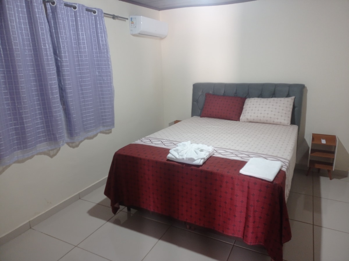 Oferecemos aos nossos hóspedes, um lar aconchegante, limpo, organizado, onde você poderá preparar as suas refeições, realizar trabalhos home office, residência toda murada, proporcionando mais segurança. Próximo ao centro da cidade de Barra do Garças-MT à 2km de distância, nessa região, temos muitos pontos turísticos, como, cachoeiras, parques de águas termais, lagos, rios e praias as margens, mirantes onde você tem a visão das 3 cidades e muito mais.
