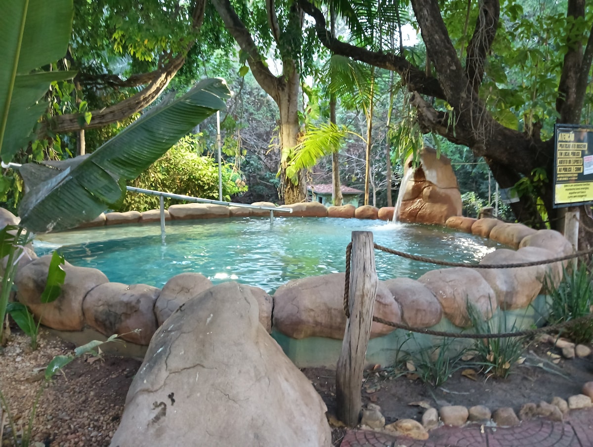 Acomodação tranquila, próxima do Parque Estadual Serra Azul, do caminho da Guarida e da Subida pela escadaria para o Cristo. Espaço ideal para repousar e renovar as energias pós brincar no Parque das Águas Quentes, curtir a Praia do Rio Araguaia, conhecer as cachoeiras usufruindo de jacuzzi externo com água natural. Espaço ideal, também, para quem esta em viagem. Casa em bairro tranquilo, com vigia noturno. Ruas tranquilas para passear com seu pet.