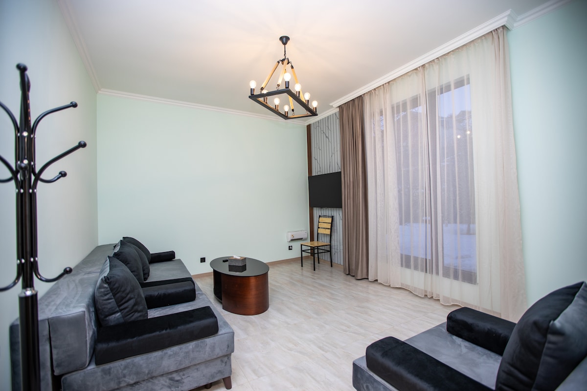 Почувствуйте Армению в этом просторном уединенном жилье, в 20 мин. езды от центра Еревана. Дом находится на втором этаже и имеет все удобства для полного уединения и отдыха. Есть веранда для утреннего кофепития, фруктовый сад с качелями и мангал для барбикю. Есть комфортабельная машина для поездок по Армении.