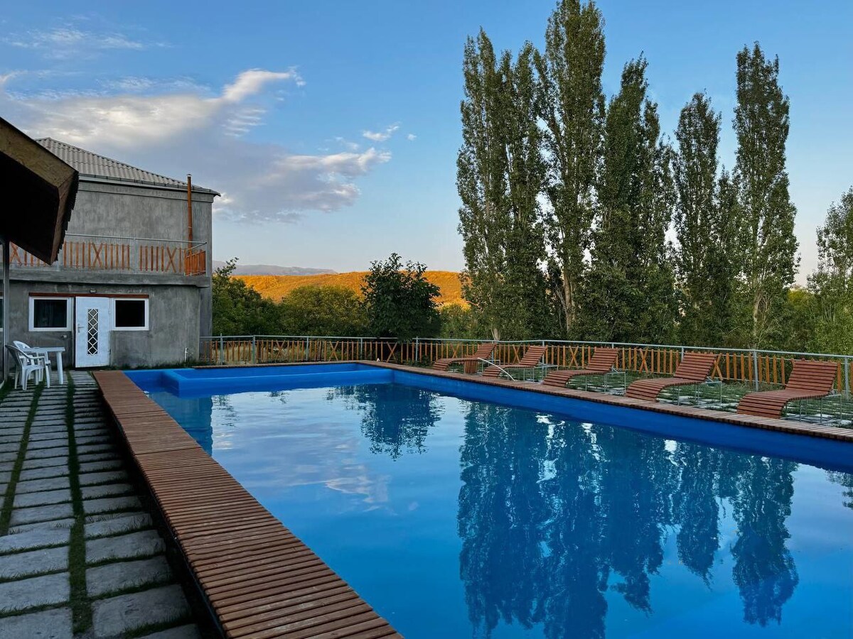 Villa Nova is a private, peaceful retreat near Yerevan, designed for comfort and quality family time. Guests enjoy a heated swimming pool, wood-fired sauna, traditional hammam, and a green, well-kept garden. The villa has three bedrooms, each with a private bathroom and TV, plus cozy indoor and outdoor relaxation areas. Ideal for families with children, quiet and loud getaways, and relaxing weekends close to the city.
