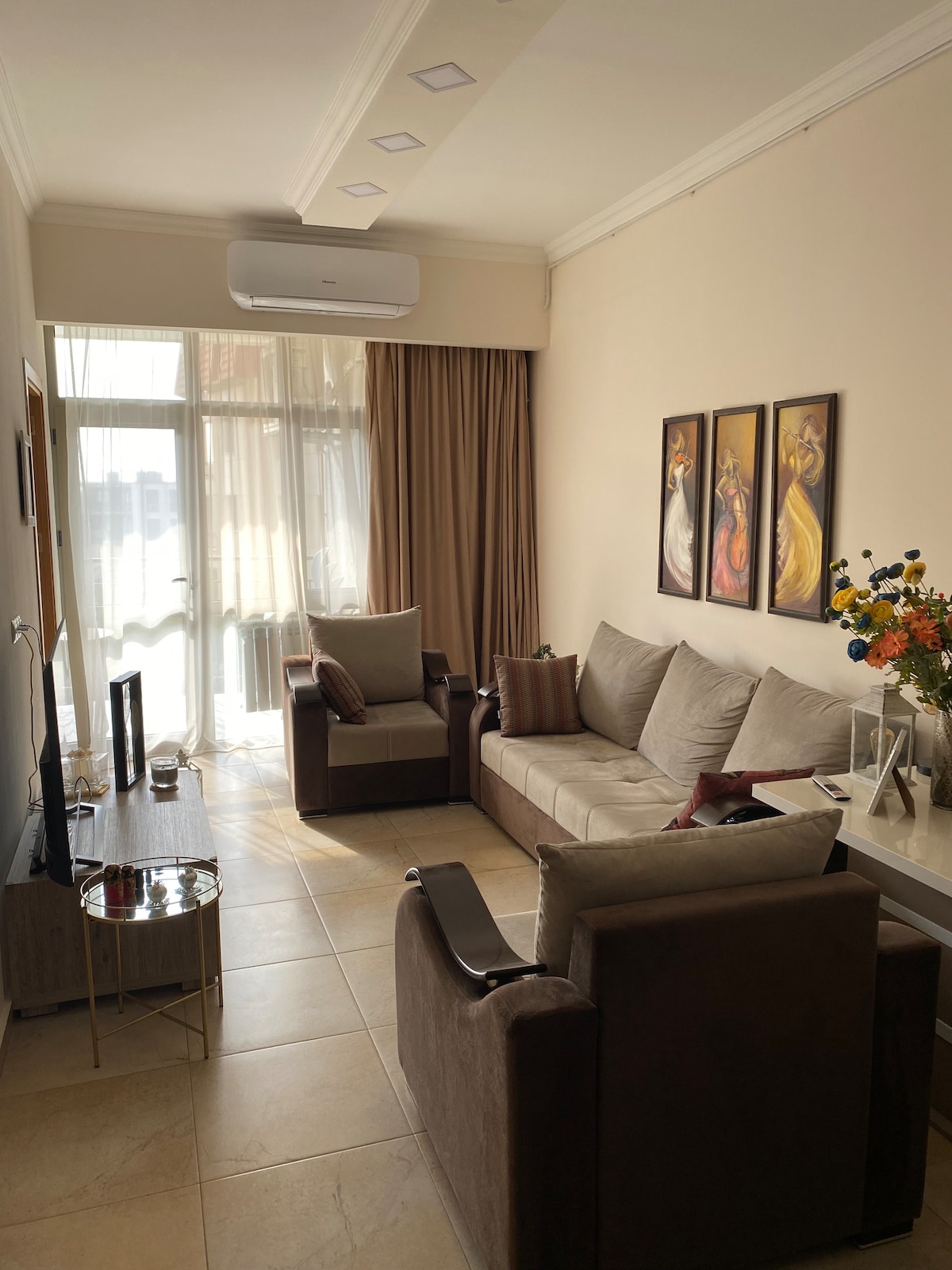 Discover our charming 2-bedroom Yerevan haven, nestled close to downtown! Immerse yourself in a vibrant neighborhood, with restaurants, a massive supermarket, stores, and cafes at your doorstep. This sunlit retreat offers all the amenities you need for a cozy stay including a dedicated working space, just a 15-minute stroll from the metro and 3 minutes from the bus station. Embrace the welcoming ambiance, experience warmth, comfort, and true Armenian hospitality – your ideal home away from home!