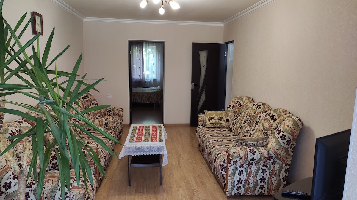 The apartment has all necessary equipment, kitchen appliances, everything for your comfort. Balcony is open in summer and closed in winter, cozy living room, 3 bedrooms with interesting design. Enjoy your rest!