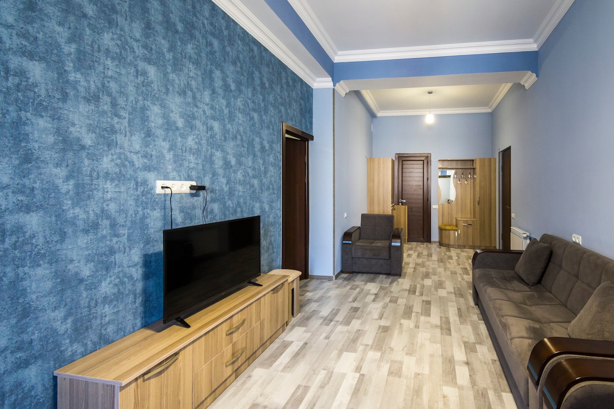Located in the cozy Khachatryan street - this luxury 2BR apartment with a comfortable kitchen and huge balcony is ideal for your stay. 1st bedroom includes a king-sized bed with an entrance to the balcony. 2nd bedroom has single and twin beds. The bright living space featured a fold out sofa. Crib, stroller and high-chair are available upon request AC is available in all rooms. We provide 2 private parking lots. A huge supermarket is within the facility. Close to the downtown and metro station