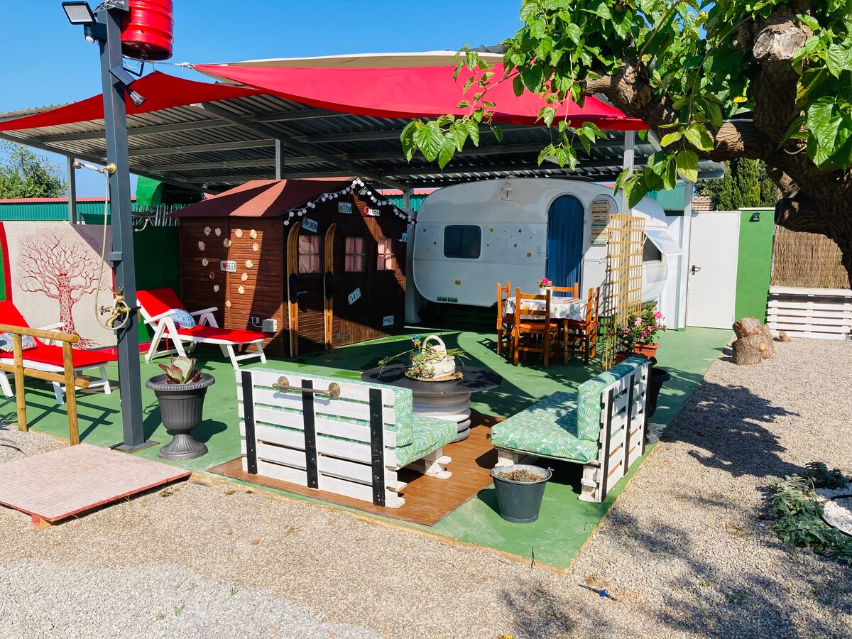 El terreno es una parcela privativa, está compuesto por una caravana-dormitorio, un baño (equipado con ducha, inodoro y lavabo) y una cocina equipada exterior independiente. Y una zona chill-out con zona comedor exclusiva para los huéspedes. Dispones de una piscina privada. Destaca por su cercanía al mar y su tranquilidad. Este alojamiento está orientado a personas que busquen desconectar, una experiencia diferente, ecofriendly con energía renovable y que quieran pasar unos días diferentes!