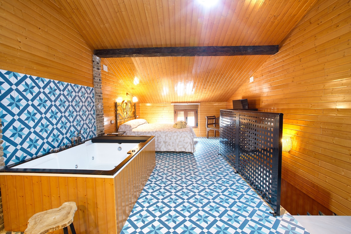 El alojamiento es el paraíso hecho realidad para sorprender a tu pareja o una estancia con amigos. Este Exclusivo y original ático rural con SPA privado te va a enamorar desde el primer momento y hasta el final de tu estancia..... tiene unas impresionantes vistas panorámicas y frontales a la montaña/monte. Disfrutarás de una zona privada exclusiva y lujosa de SPA en casa: sauna y jacuzzi totalmente privados y tanto el jacuzzi como la sauna tienen una capacidad de 3 personas.