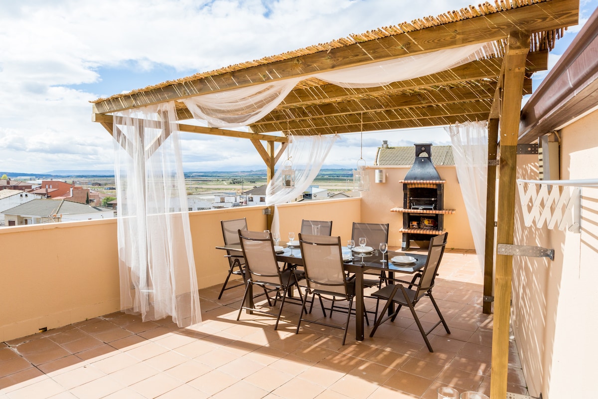 El ático de Las Bardenas Reales de Navarra. Fantástico ático con terraza en Arguedas, puerta de entrada a Las Bardenas Reales de Navarra. Está compuesto por dos dormitorios con balcón, un baño, cocina completamente equipada, salón comedor y una terraza de 70m2