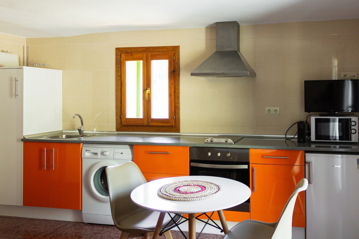 Cálido apartamento de una habitación totalmente equipado para estancias cortas o largas, ubicación privilegiada para disfrutar de las principales atracciones que ofrece el Pirineo aragonés. Queremos que te sientas como en casa, por ello tendrás a tu disposición: - Cocina totalmente equipada. - Baño con bañera y agua caliente. - Trastero disponible para guardar de forma segura material deportivo. - Te podemos orientar: rutas bici, trekking, cata, ocio, etc.