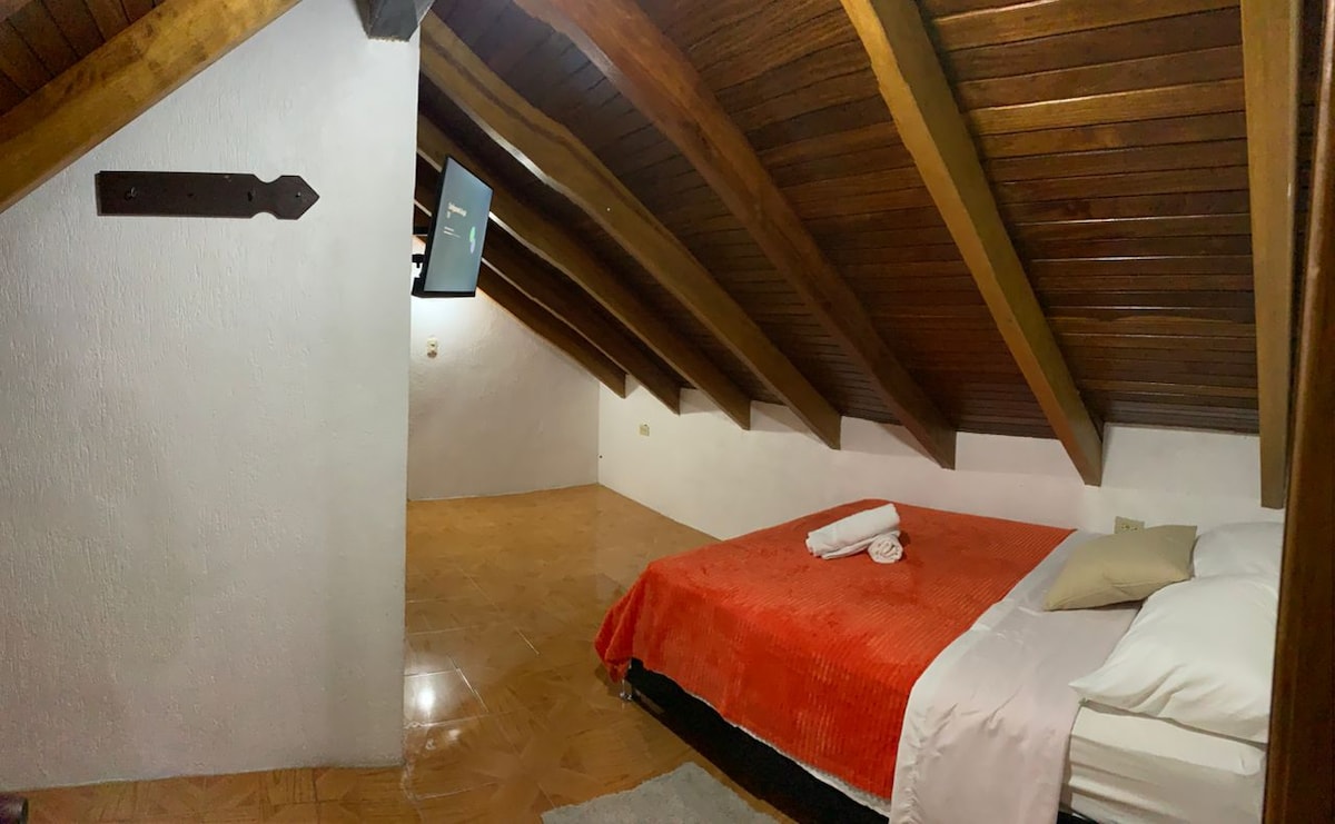 La Habitación Matrimonial Plus del Hotel El Arroyo ha sido recientemente remodeladas para brindar un ambiente cómodo y acogedor. Esta habitación esta diseñada para dos personas, y esta equipada con sabanas, baño privado con toallas suaves, jabón de ducha, shampoo, aire acondicionado split, SMART TV 32" y WIFI gratuito.