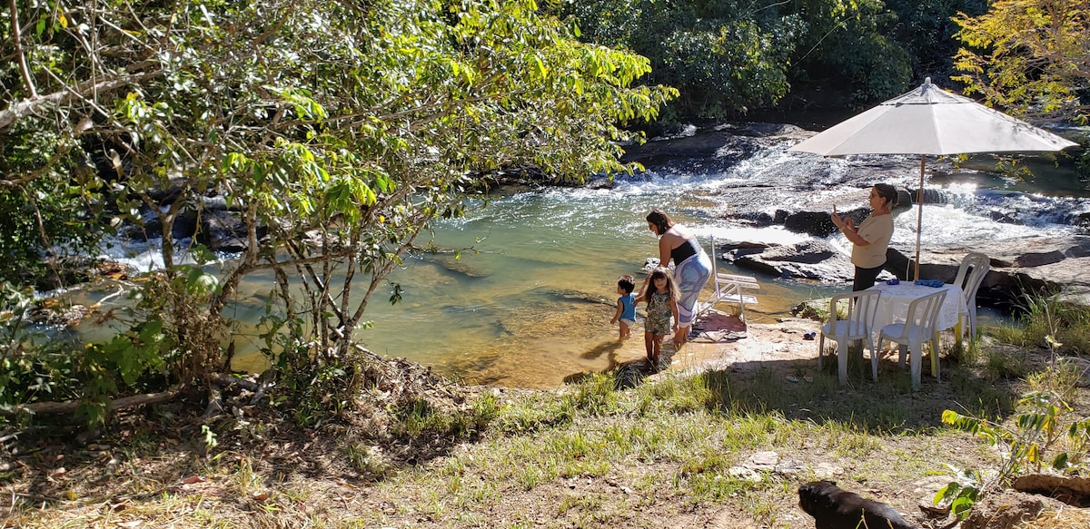 Temos dois charmosos chalés, localizados a 9 km da cidade de Pirenópolis . Em um condomínio ecológico, em uma área de preservação ambiental, com uma vista incrível do cerrado, com serras e paredões. Em meio a jardins floridos. Permite aos hóspedes, acesso exclusivo a uma cachoeira de tirar o fôlego, no Rio das almas. O Espaço Natural foi pensado especialmente para pessoas que querem descansar e repor as energias, em contato com a natureza! É um espaço silencioso, aconchegante e de muita paz.