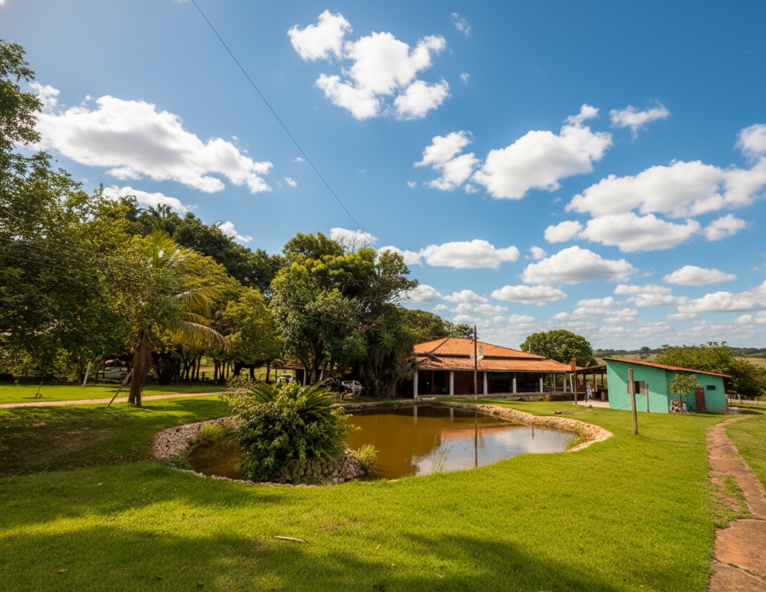 🌳🏡 Localizada a 28 km (38 minutos) do Autódromo Internacional Ayrton Senna, nossa estância oferece a tranquilidade da natureza com acesso fácil aos principais eventos de Goiânia. Bem-vindo à sua experiência única, onde a natureza e tranquilidade se encontram a poucos quilômetros de Goiânia. Na Estância do Caminho do Meio, você e sua família terão uma vivência exclusiva, com 150 mil metros quadrados de puro refúgio verde.