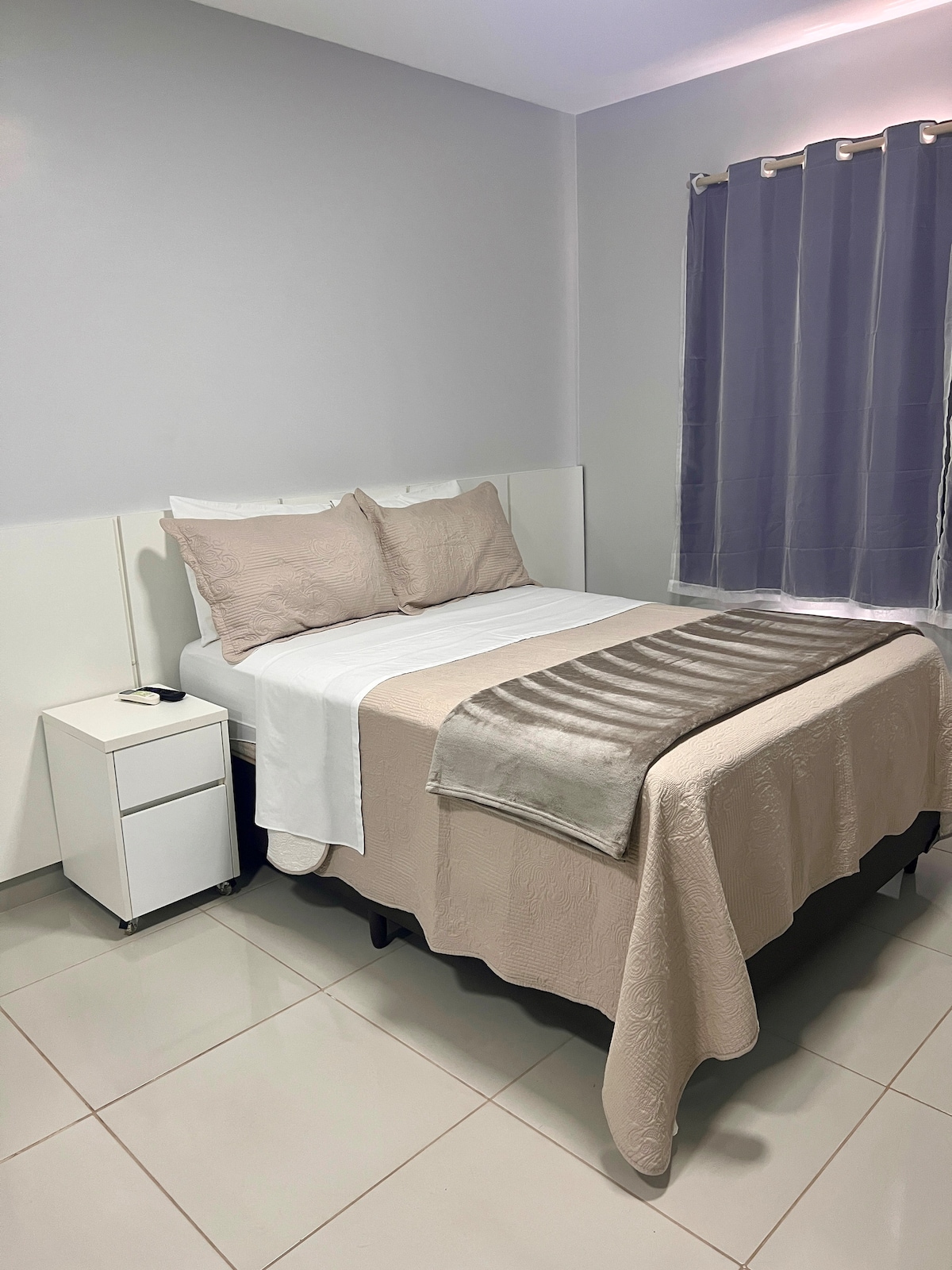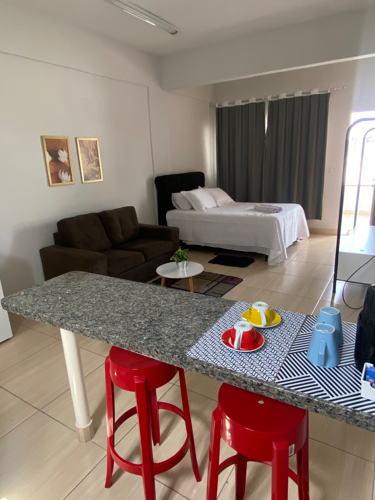 Hospede-se com muito conforto neste flat moderno e perfeito para até 4 pessoas. A localização é imbatível: pertinho do Shopping Flamboyant, que conta com um polo gastronômico incrível e diversas opções de lazer. No térreo do edifício, possui cafés e restaurantes que trazem ainda mais comodidade para sua estadia. Piscina com borda infinita no último andar e uma vista linda da cidade Localização estratégica e uma experiência de estadia inesquecível em Goiânia. Enxoval de muita qualidade.
