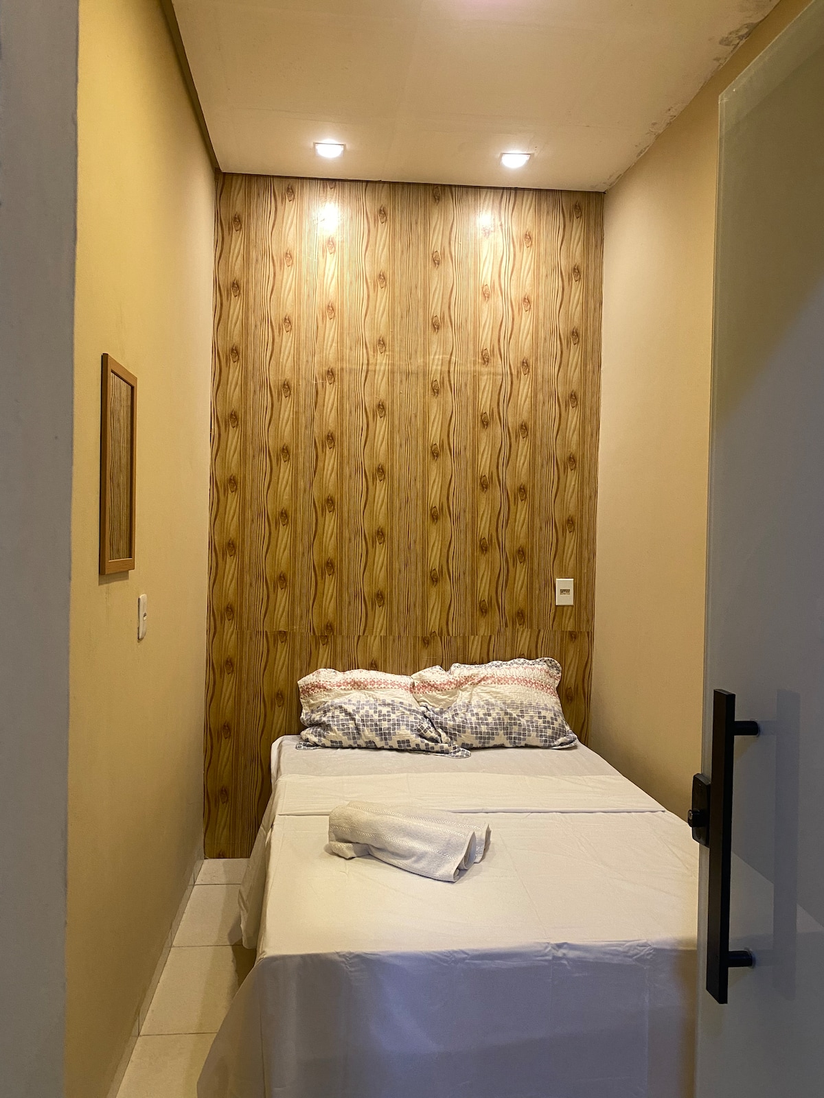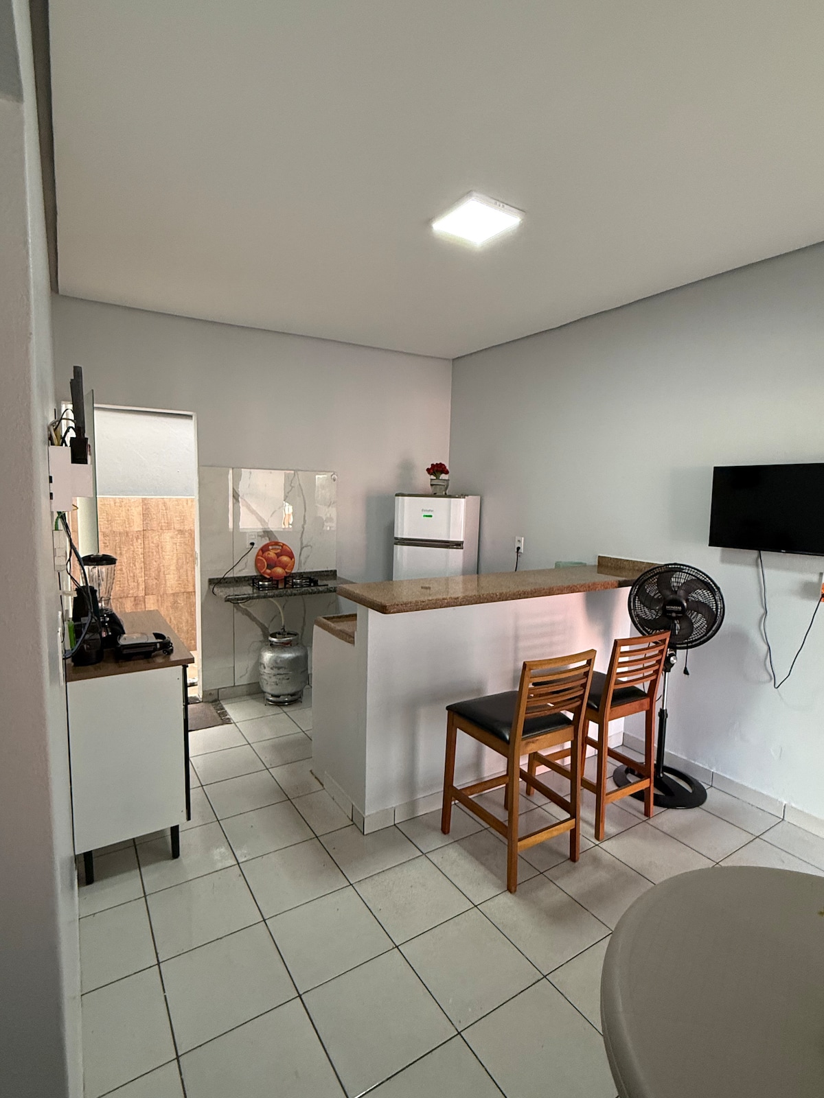 O espaço foi pensado para oferecer praticidade. •Cozinha completa: Frigobar, Fogão… •Quarto: cama casal •Banheiro possui: água quente e fria, shampoo, condicionador e sabonete líquido. •Disponível: toalhas de banho brancas de acordo com a quantidade de hóspedes na reserva. Nossos hóspedes estacionam o carro na rua em frente ao local, a rua é tranquila e o bairro é seguro, tem câmeras de vigilância e guarda noturno. A hospedagem não possui garagem. O local fica a 5 min do Centro da cidade