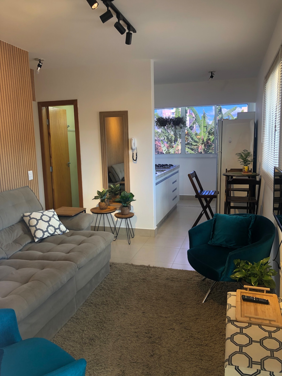 Este lugar único tem um estilo próprio. Localizado em novíssimo prédio de 3 andares com elevador, ambiente climatizado, confortável que acomoda até 4 pessoas, com quarto, sala de estar, banheiro, cozinha e varanda, além da presença de segurança eletrônica, garagem e lavanderia. O apartamento também conta com acesso direto aos principais pontos da cidade e à BR-050. Apartamento todo mobiliado, com roupa de cama e toalhas, toque de seda, para um completo sono dos anjos. Muito charmoso!