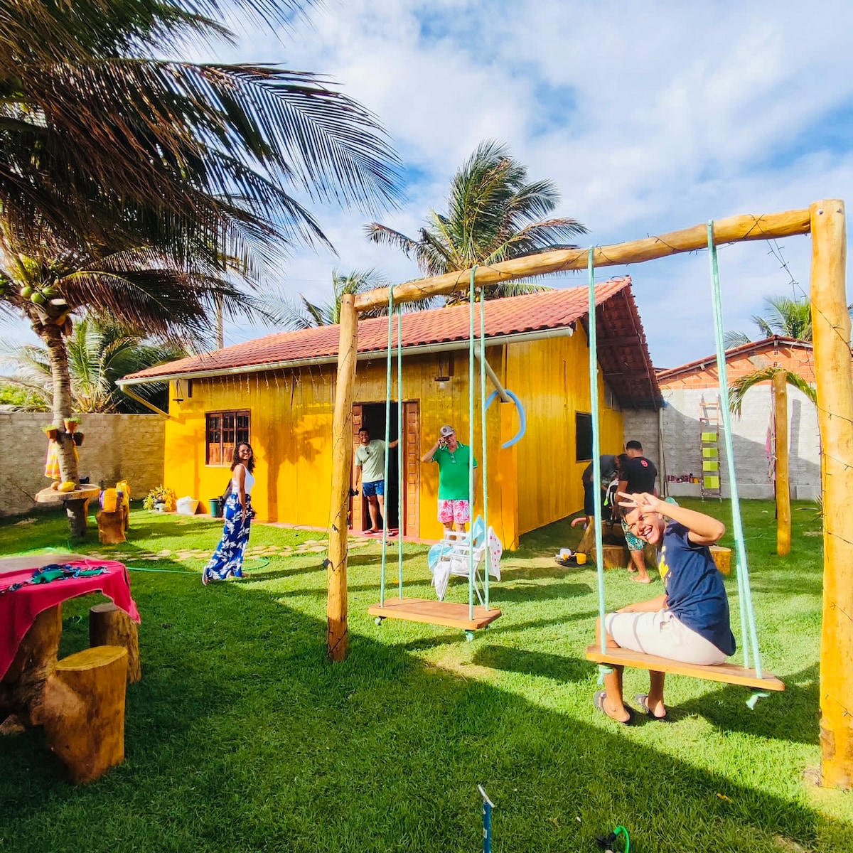 O chalé oferece um espaço para a familia relaxar ao som e brisa do mar. Possui uma excelente vista panoramica que possibilita enchergar o navio Aline Ramos, encalhado na praia. Em linha reta fica a trinta metros da praia.