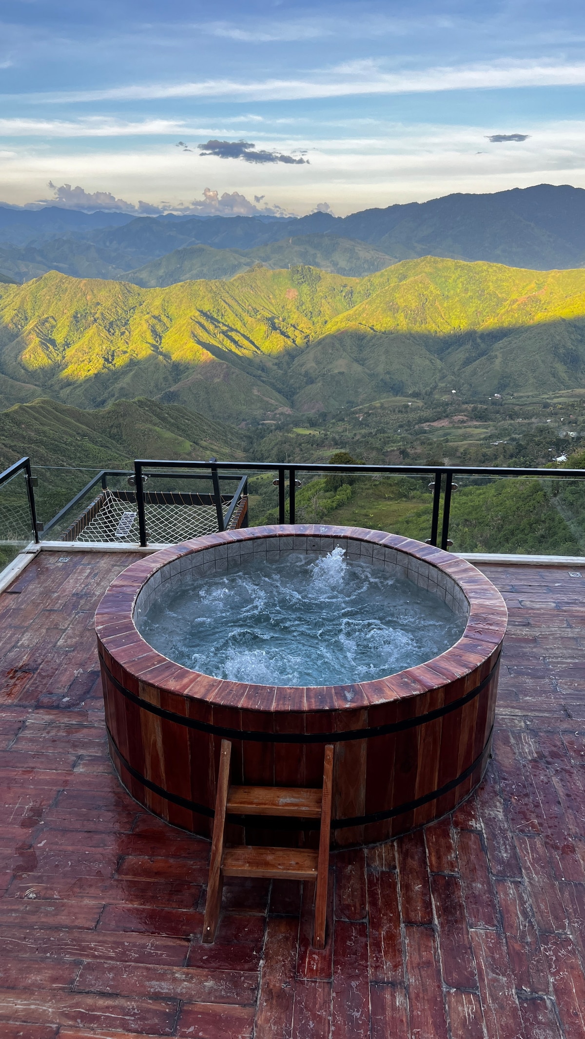 Rise and shine at Pinewoods Cabin's SUNRISE 1 Cabin! Perfect for an intimate retreat for 2. - Immerse yourself in a Private Jacuzzi experience - Cozy up in the Queen Size Bed - Refresh in the Bathroom with Hot & Cold Shower - Basic kitchen amenities: Burner with LPG, Kitchen Utensils, Rice Cooker, Refrigerator - Stay entertained with Satellite TV and Wifi