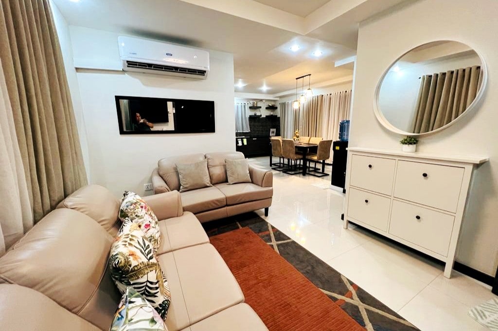 This 4-bedroom house is completely air-conditioned, living room included; it has 3 bathrooms and free parking space. The kitchen has a refrigerator and is well equipped with cooking utensils, an induction cooker, a rice cooker, an electric kettle, a water dispenser, and a BBQ grill. The whole group will enjoy easy access to everything as the house is centrally located and is nestled between G Mall and Vista Mall, both of which are within walking distance.
