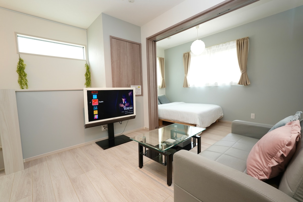 Just a 5-min walk from Kitasenju Station, with easy access to sightseeing spots like Asakusa (16 min) and Akihabara (15 min). Located in a quiet alley behind a lively shopping street, this stylish apartment with a loft sleeps up to 3 guests—great for couples or girls’ trips. The bright interior offers a cozy atmosphere, and a 60-inch screen with projector lets you enjoy movie nights. Restaurants, supermarkets, and a traditional bathhouse are all nearby—perfect for a relaxing Tokyo stay.