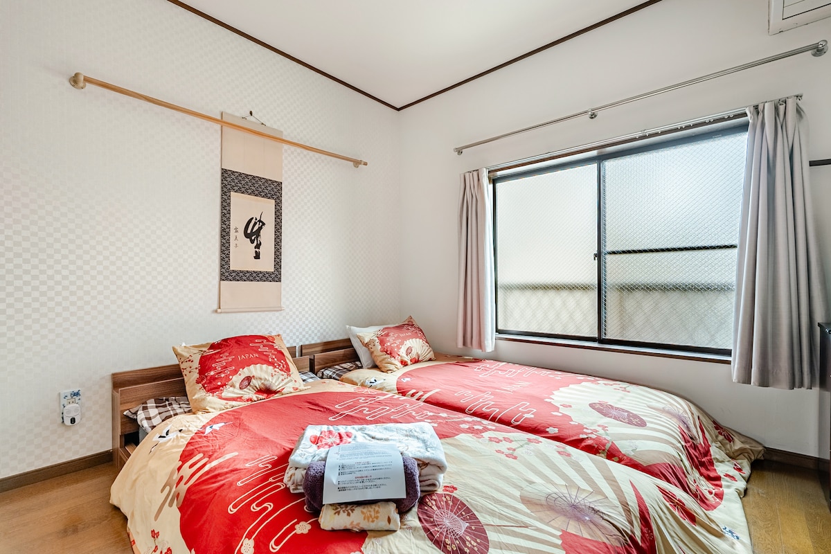 心温まる東京の隠れ家で忘れられない思い出を! JR山手線駒込駅徒歩5分。 新宿、渋谷、上野へ直通電車、抜群のロケーションは東京観光の拠点に最適。羽田・成田空港からも約1時間の便利なアクセスです。メトロも有り。 ダブルベッド1台、シングルベッド2台、最大4名様まで宿泊可。フルキッチン、洗濯乾燥機、高速Wi-Fiも完備し長期滞在も可能。 自慢は、オーナーである私が責任を持って清掃する「最高の清潔さ」お客様からも高い評価があります。妻が心を込めて描いたアートとこだわりのインテリアが彩る空間は、まるで絵本の世界のよう。壁一面の桜の絵の壁紙は、日本の美しさを象徴しています。 徒歩圏内には、温泉や、多種多様な飲食店も。 私達は、ゲストの皆様との出会いを何よりも大切にしています。滞在が素晴らしいものになるよう、心を込めてお手伝いします。ぜひ私たちの隠れ家で、特別な時間をお過ごしください。皆様のお越しを心よりお待ちしております! ※宿は予約が取りづらくなっています。同じ建物の二階にもお部屋をオープンしましたのでそちらもご利用ください。airbnb.jp/h/sakurafan2f-komagome